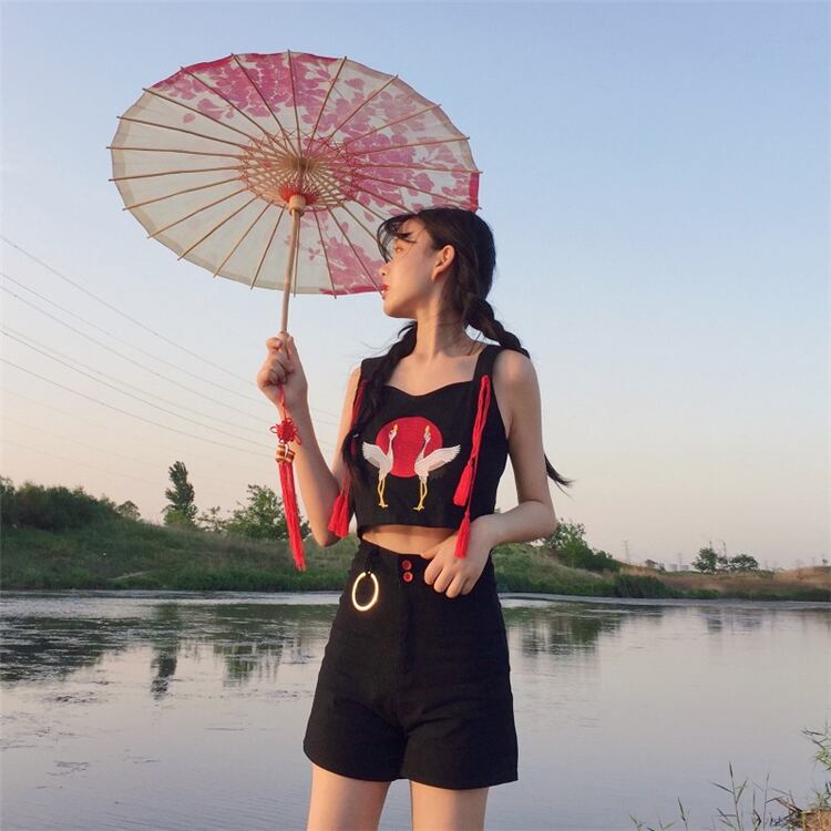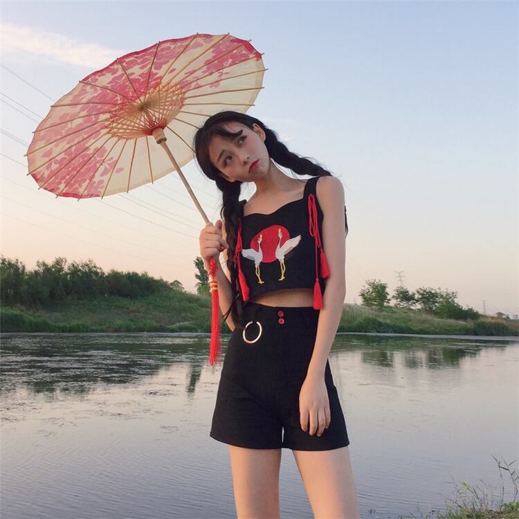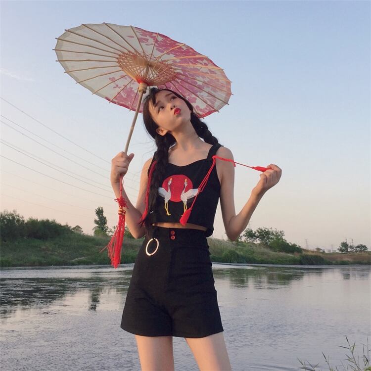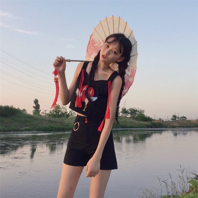 ✞ きれいめ☆スタンダード刺繍キャミソールトップス ♬カワイイ♥ショートスカート レトロ ✞ゴスロリ SM ミリ 甘ロリ クラロリ 和ロリ エレガント 黒ロリ 姫ロリ 華ロリ BB-BB2431997