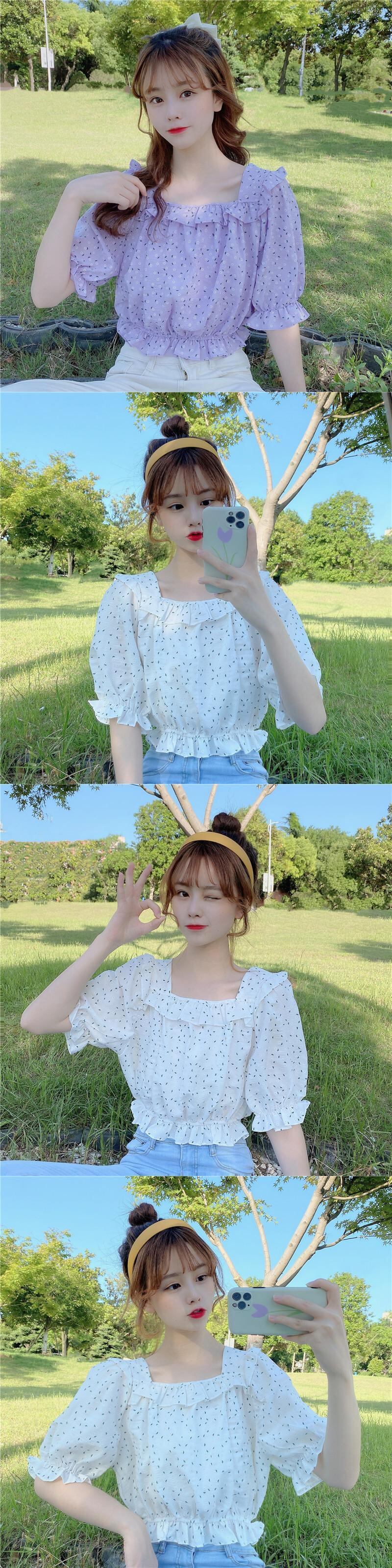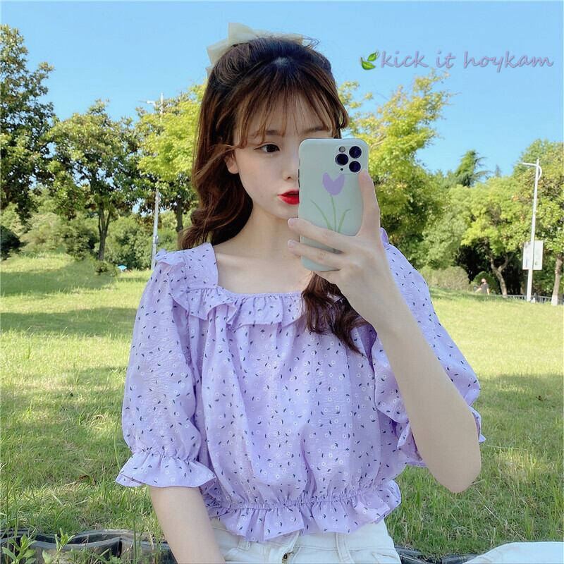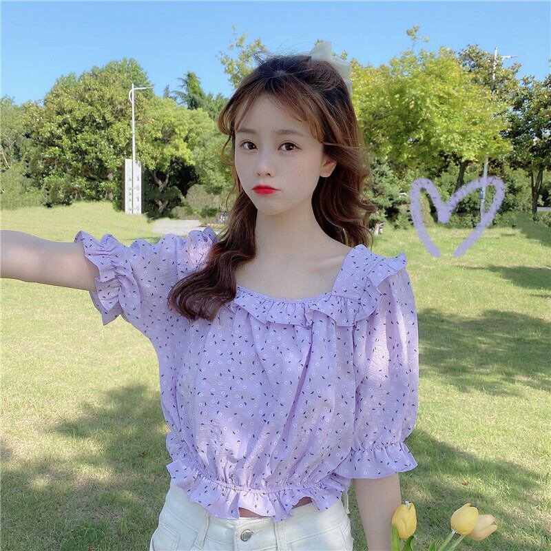 ✞ 花柄スリーブショートウエストすっきり☆着痩せスリムシャツブラウス 大人ガーリー スウィート キュート カジュアル スクウェア ✞ゴスロリ SM ミリ 甘ロリ クラロリ 和ロリ エレガント 黒ロリ 姫ロリ 華ロリ BB-BB8873532