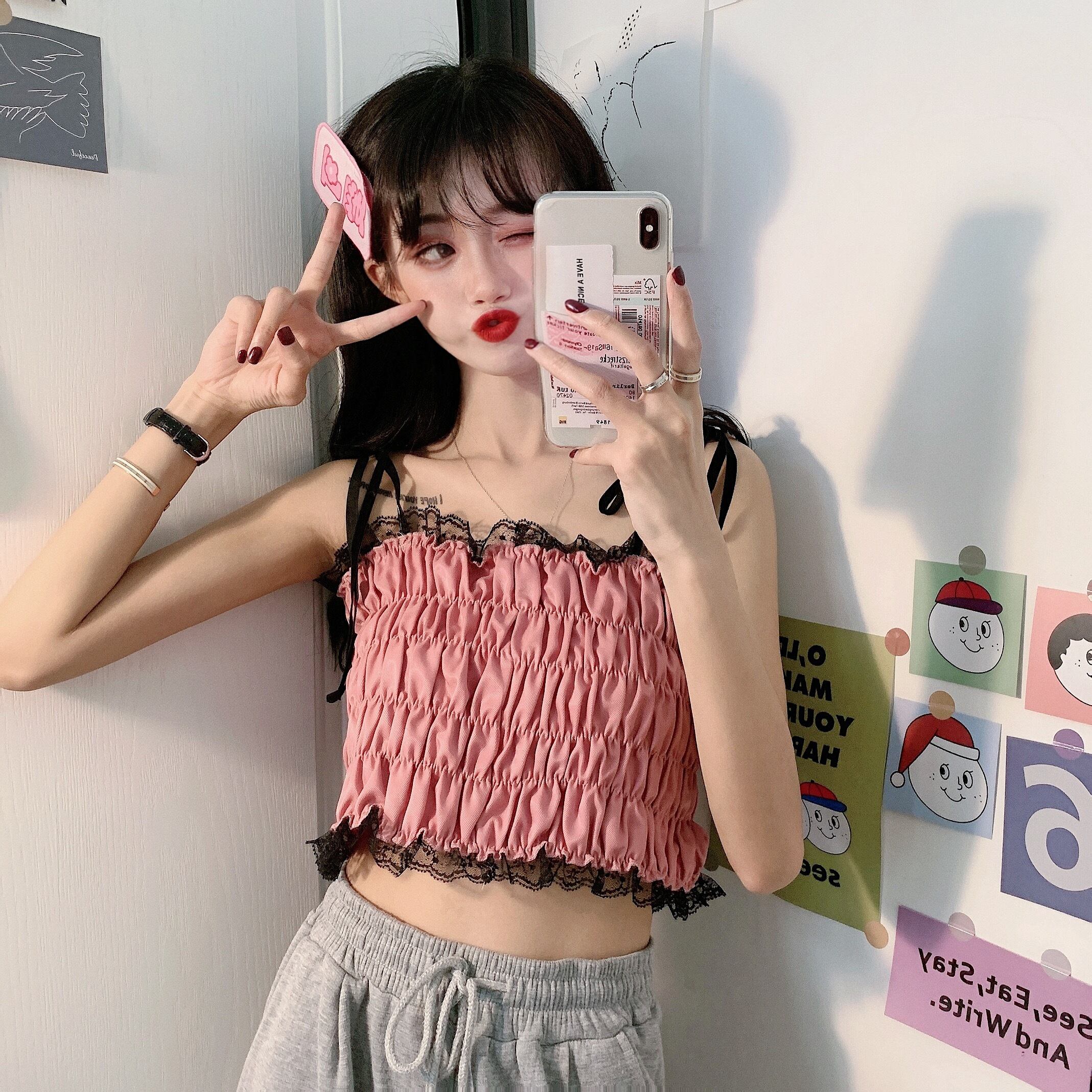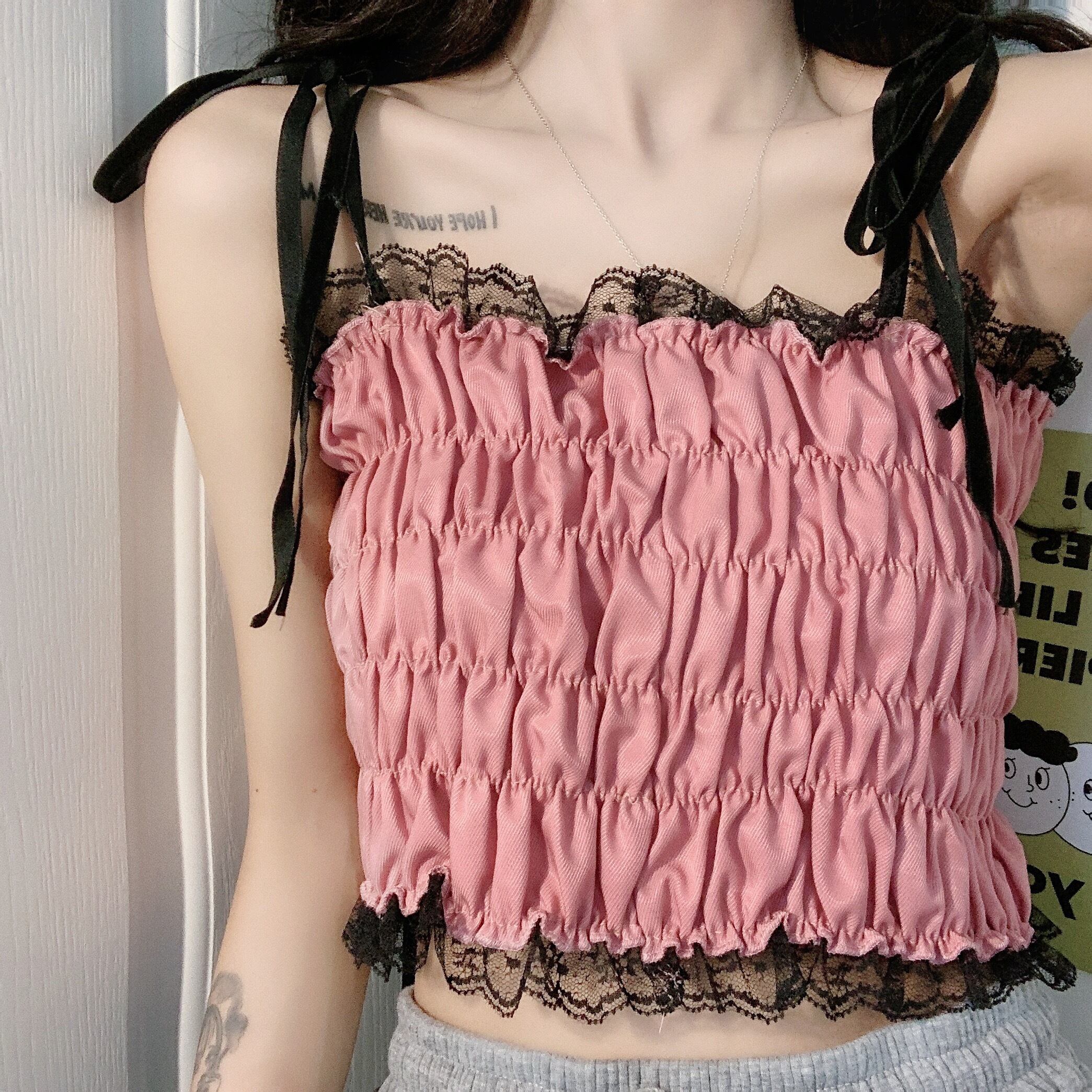 色:ピンクのサスペンダー,小さな白いスリング,小さな黒いスリング
