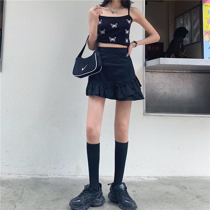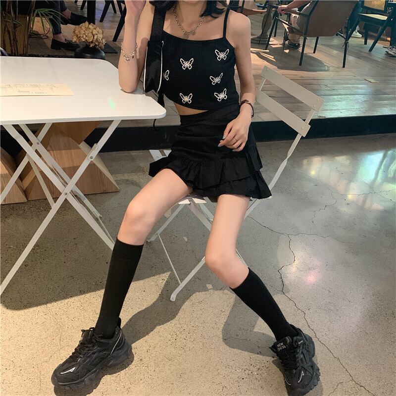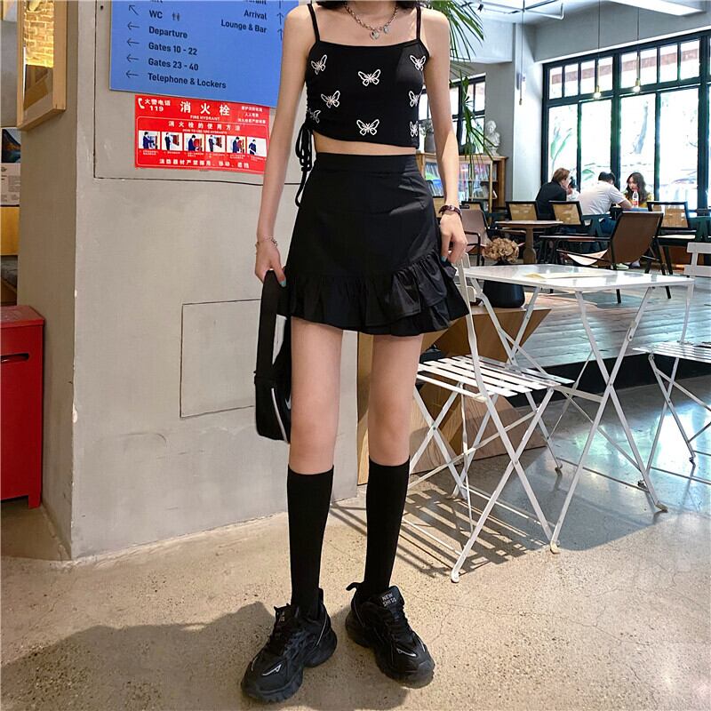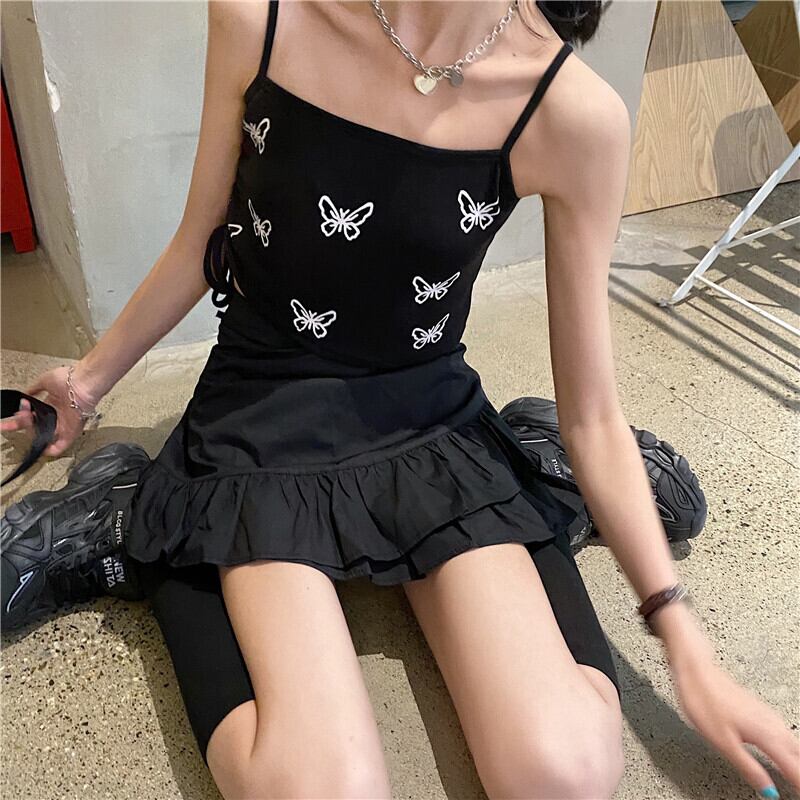 ✞ スリムショートButterflyデザイン サイドギャザーキャミソール♬カワイイ♥スカート ✞ゴスロリ SM ミリ 甘ロリ クラロリ 和ロリ エレガント 黒ロリ 姫ロリ 華ロリ BB-BB7060322
