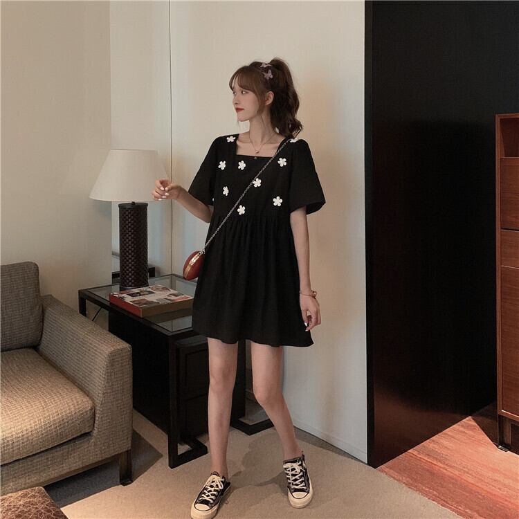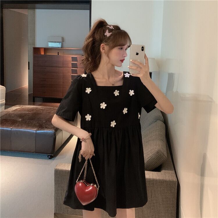 ✞ スカート 半袖スリーブ♬カワイイ♥ ショート ハーフスリーブ 大人ガーリー スウィート キュート カジュアル フラワーデザイン スクウェア ステッチ ✞ゴスロリ SM ミリ 甘ロリ クラロリ 和ロリ エレガント 黒ロリ 姫ロリ 華ロリ BB-BB5048317