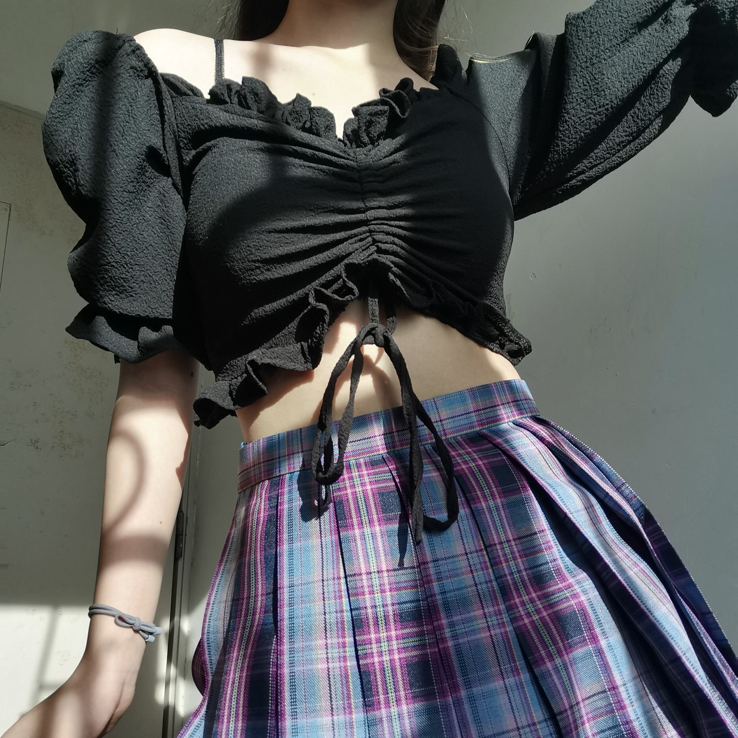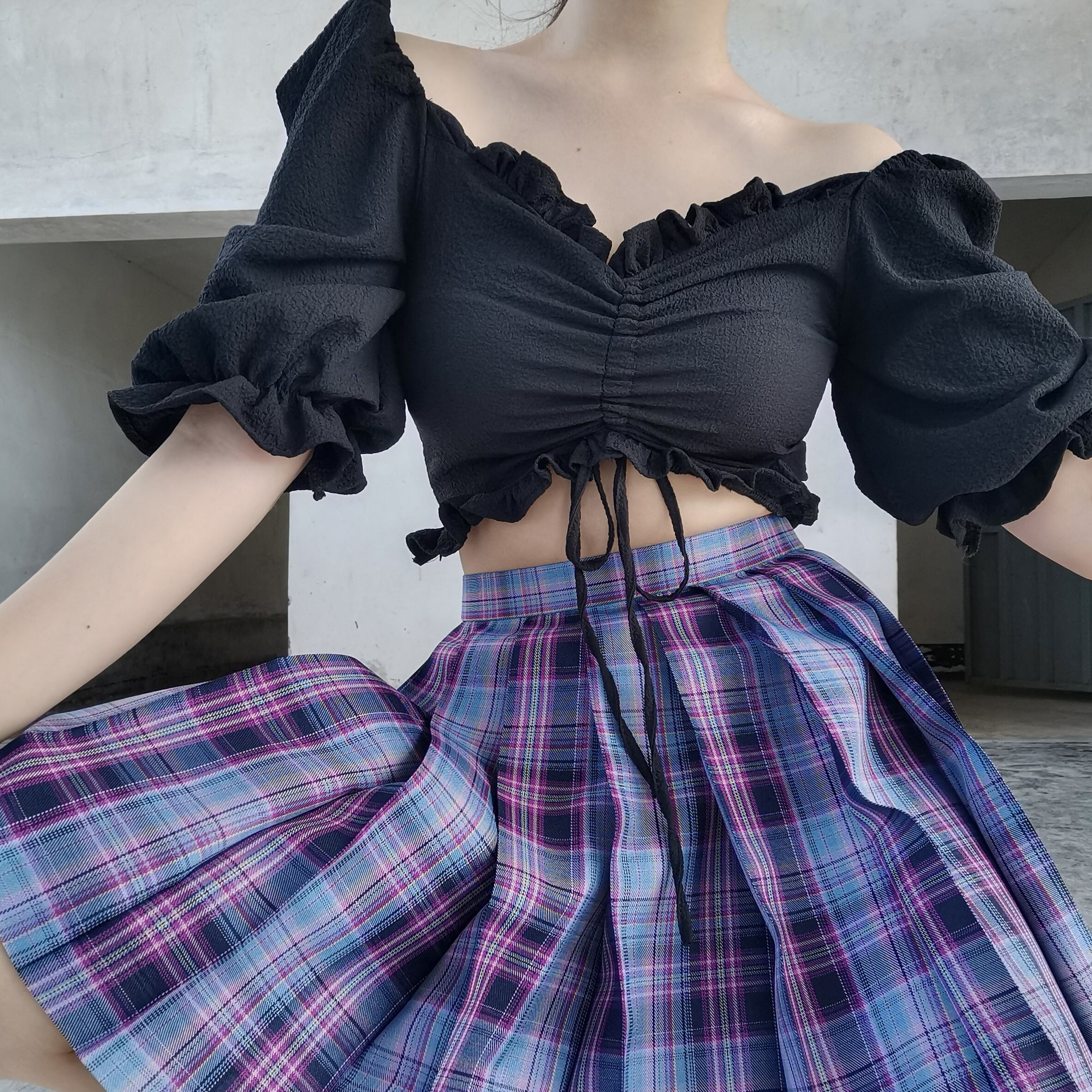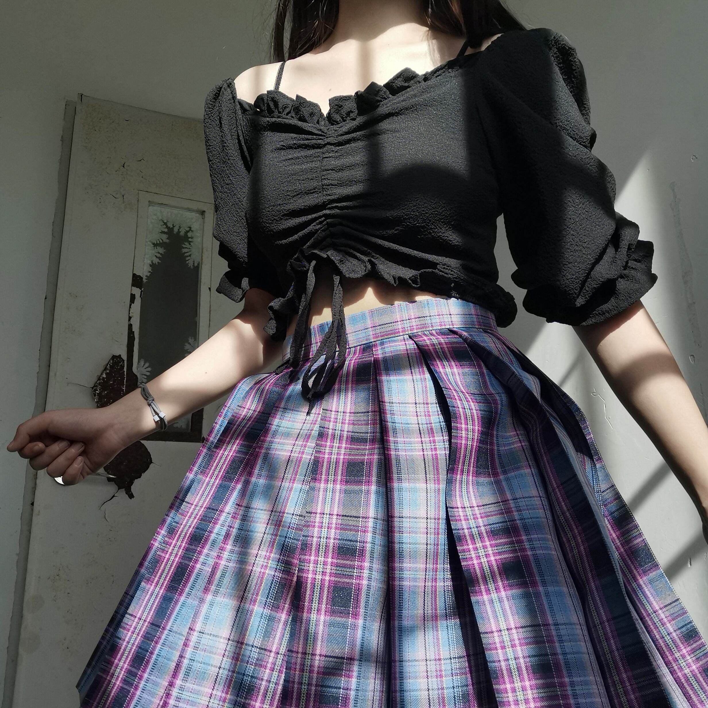 ✞ ダークギャザーショートトップス プリーツスカート ✞ゴスロリ SM ミリ 甘ロリ クラロリ 和ロリ エレガント 黒ロリ 姫ロリ 華ロリ BB-BB6568380