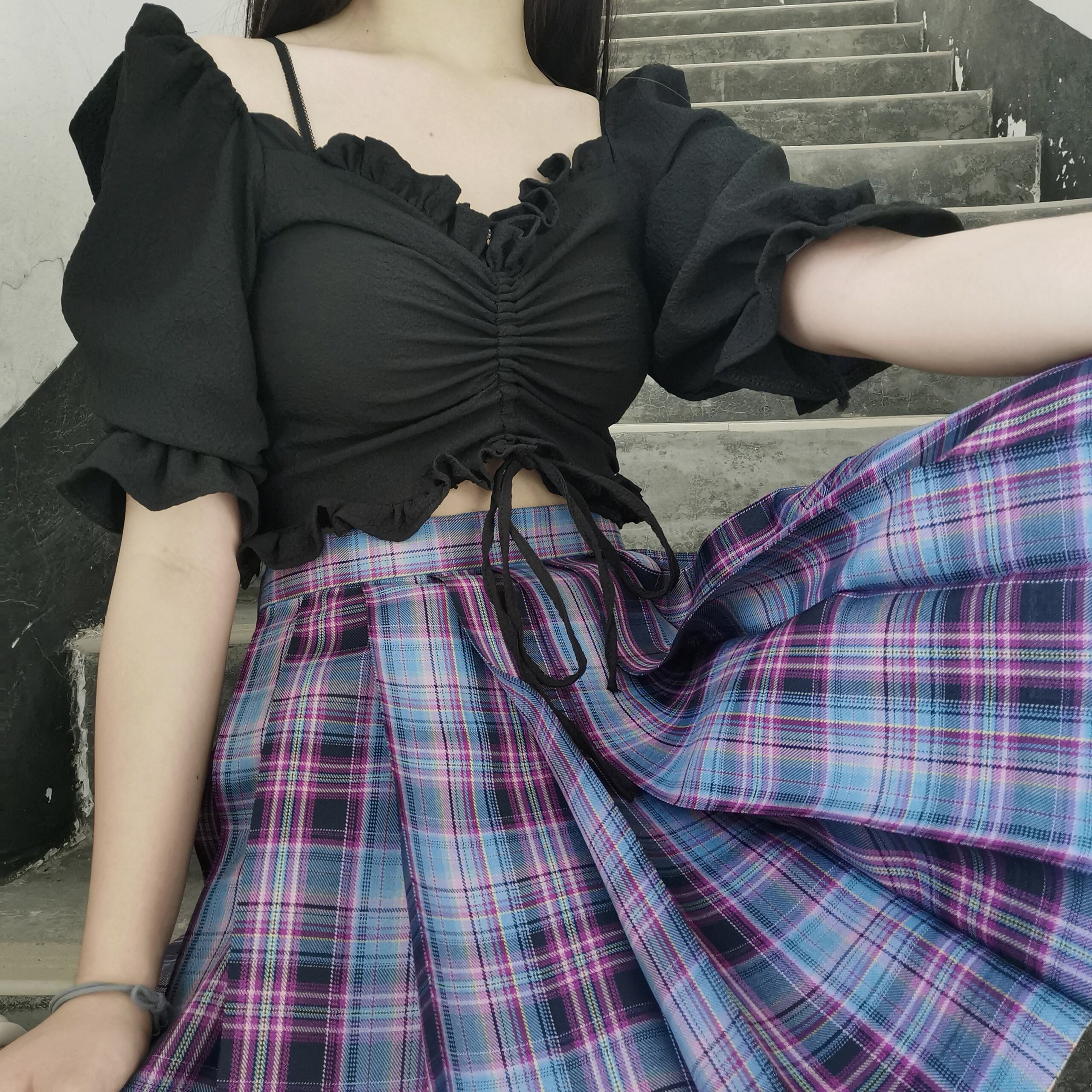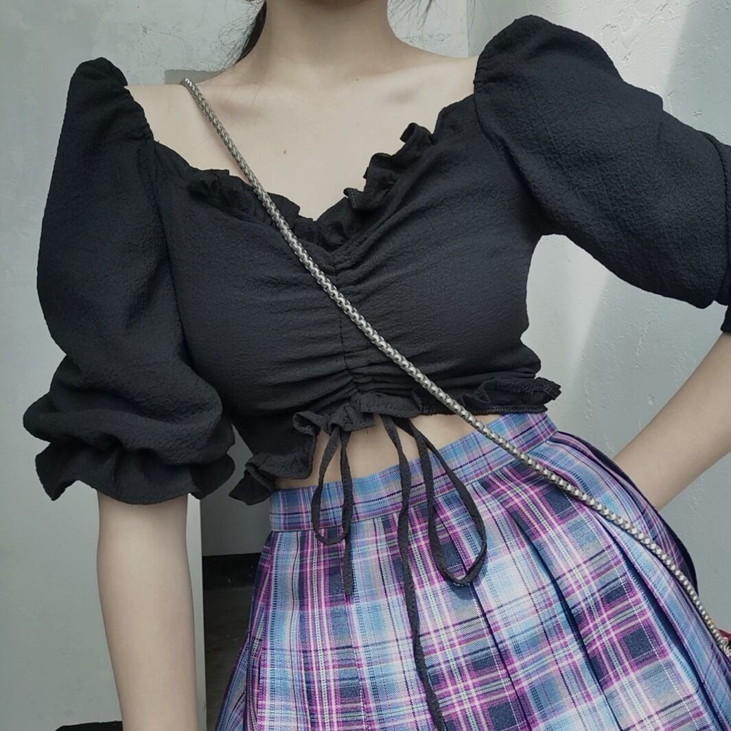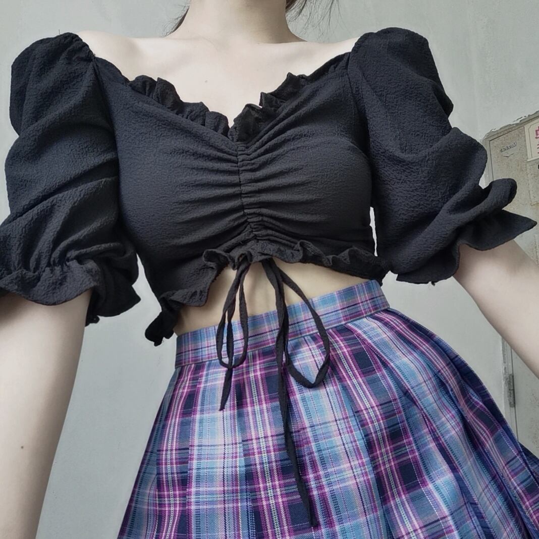 ✞ ダークギャザーショートトップス プリーツスカート ✞ゴスロリ SM ミリ 甘ロリ クラロリ 和ロリ エレガント 黒ロリ 姫ロリ 華ロリ BB-BB6568380