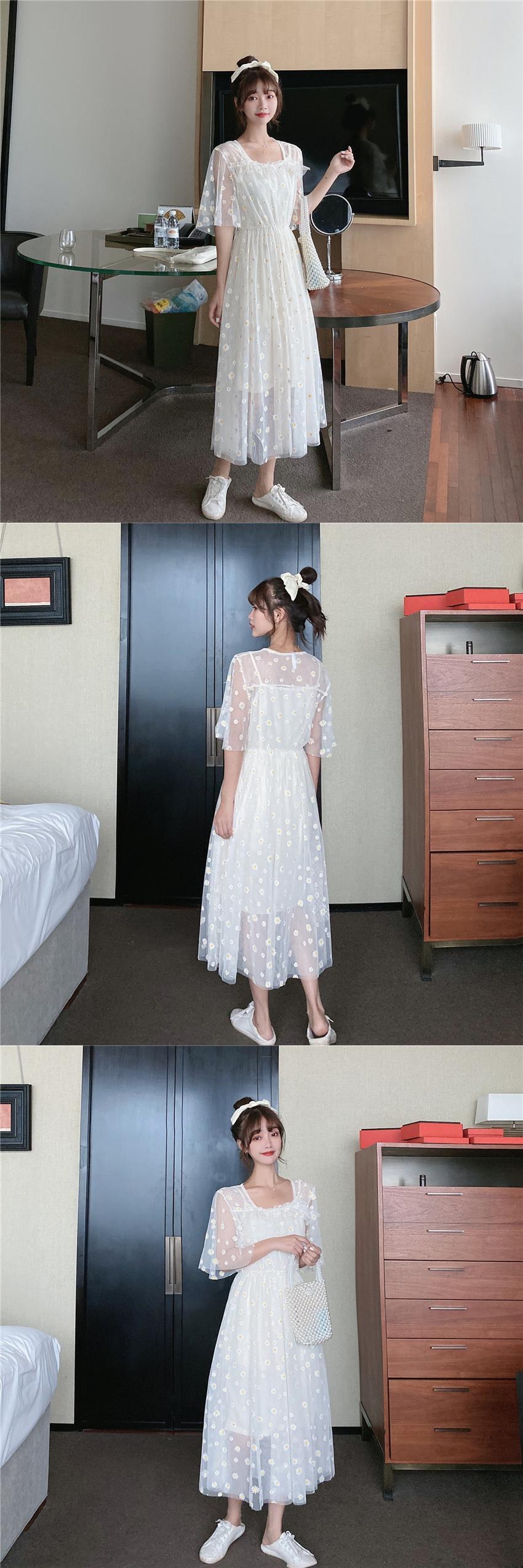 ✞ 透け感ありプリント花柄メッシュワンピース スカート 大人ガーリー スウィート キュート カジュアル ✞ゴスロリ SM ミリ 甘ロリ クラロリ 和ロリ エレガント 黒ロリ 姫ロリ 華ロリ BB-BB8874901