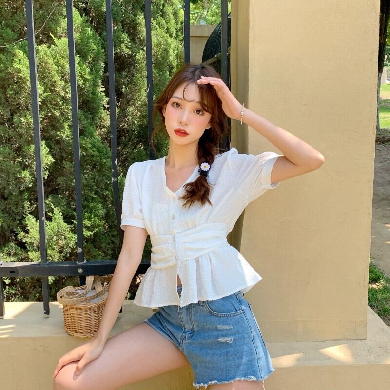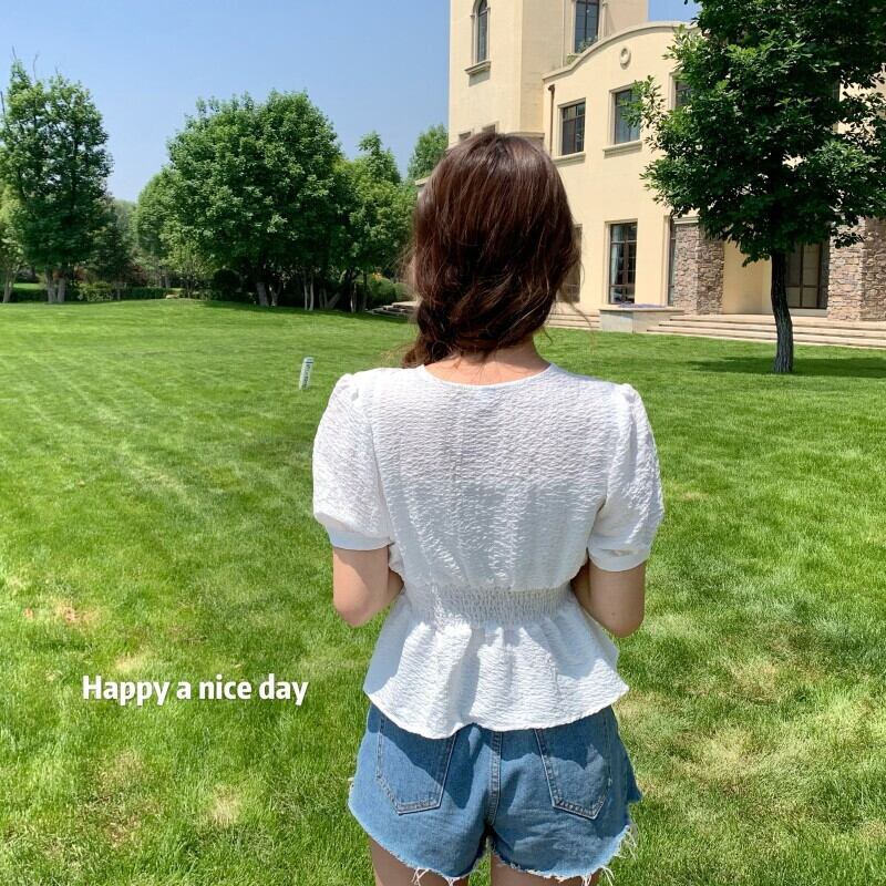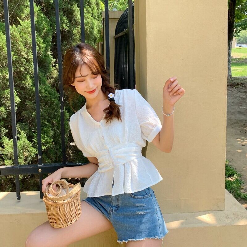 ✞ ショートシャツブラウスきれいめ☆スリーブVネックウエストすっきり☆着痩せトップス 大人ガーリー スウィート キュート カジュアル ✞ゴスロリ SM ミリ 甘ロリ クラロリ 和ロリ エレガント 黒ロリ 姫ロリ 華ロリ BB-BB5637969