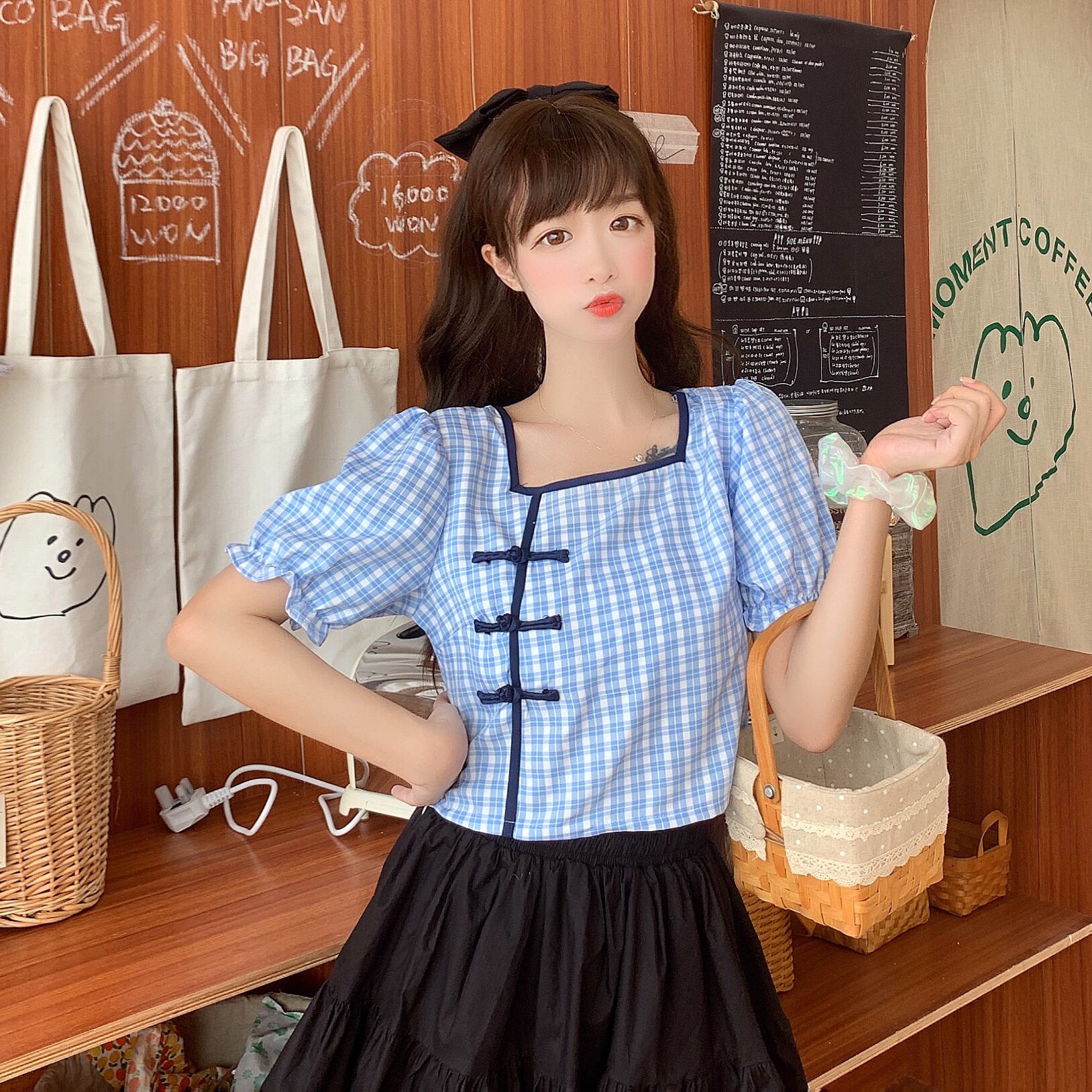 ✞ きれいめ☆スタンダードバックルシャツブラウススリーブチェック柄トップス レトロ スクウェア ✞ゴスロリ SM ミリ 甘ロリ クラロリ 和ロリ エレガント 黒ロリ 姫ロリ 華ロリ BB-BB6283440