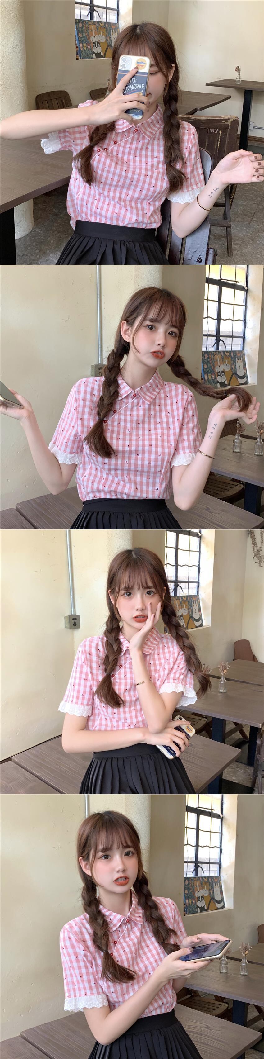 ✞ シャツブラウスきれいめ☆スタンダードバックルショートレーストップス レトロ ✞ゴスロリ SM ミリ 甘ロリ クラロリ 和ロリ エレガント 黒ロリ 姫ロリ 華ロリ BB-BB8085277