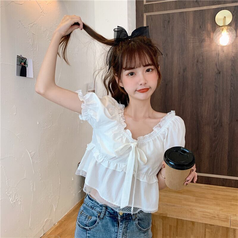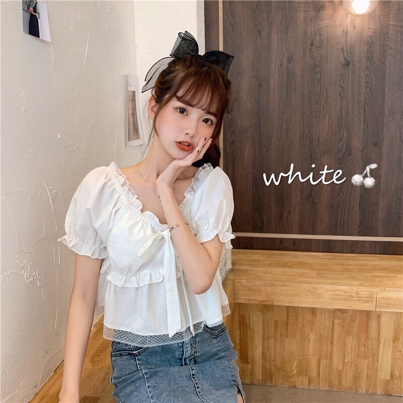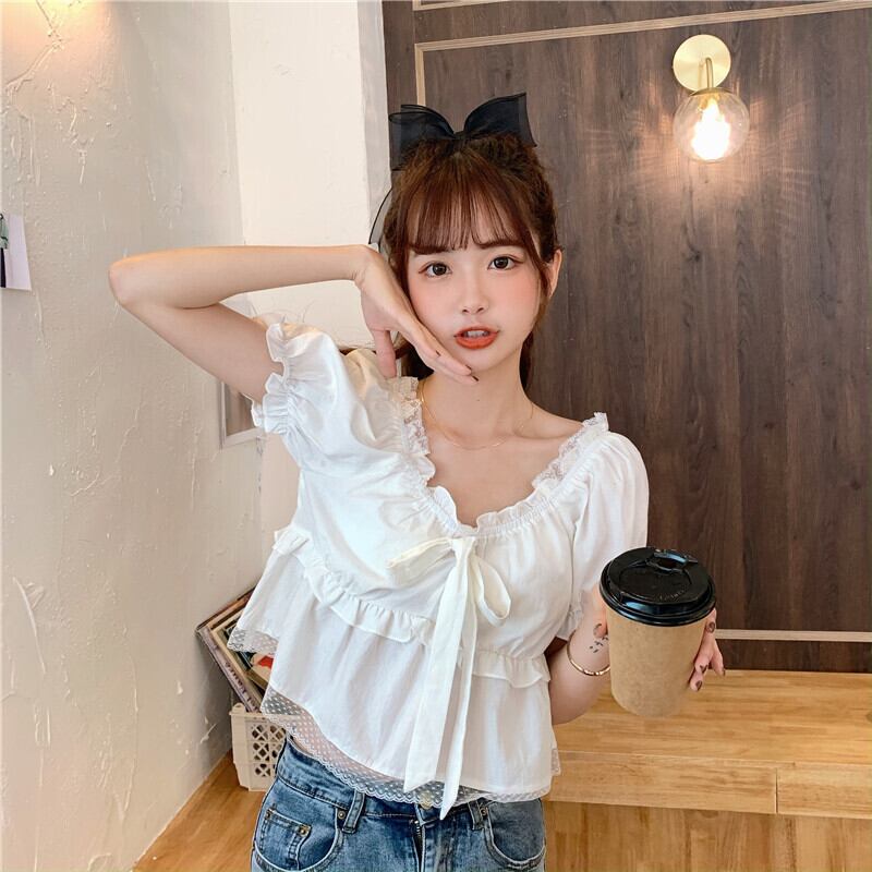 ✞ レースVネックショートシャツブラウストップス 大人ガーリー スウィート キュート カジュアル レースアップ ステッチ ✞ゴスロリ SM ミリ 甘ロリ クラロリ 和ロリ エレガント 黒ロリ 姫ロリ 華ロリ BB-BB5570902