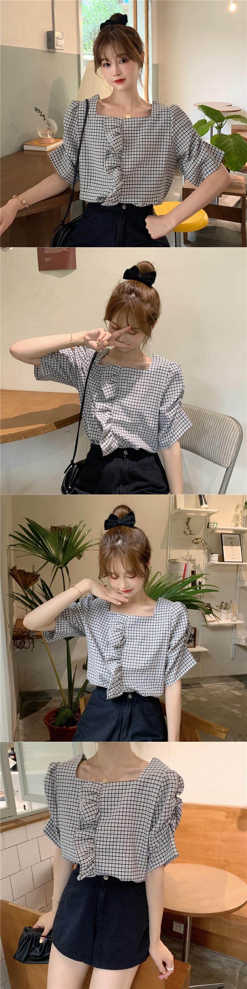 ✞ チェック柄シャツブラウス♬カワイイ♥スリーブトップス 大人ガーリー スウィート キュート カジュアル スクウェア ✞ゴスロリ SM ミリ 甘ロリ クラロリ 和ロリ エレガント 黒ロリ 姫ロリ 華ロリ BB-BB8054585