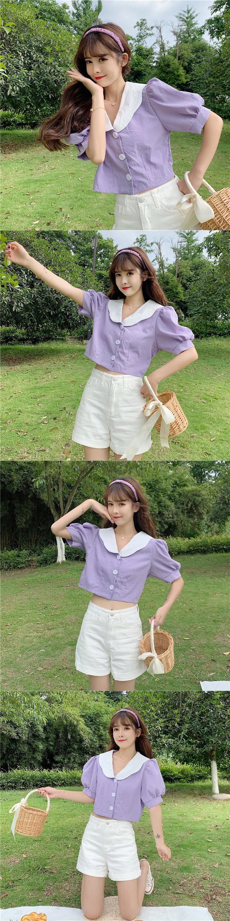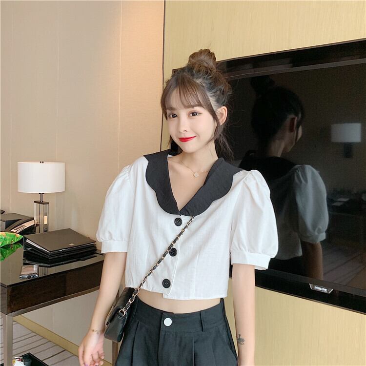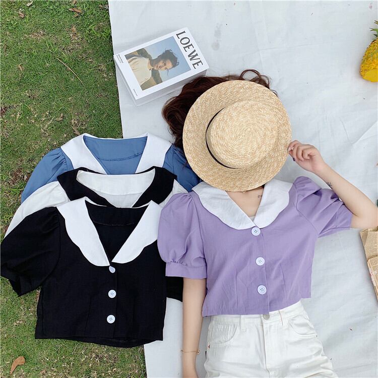 ✞ ショートスリーブシャツブラウスカラーボタン 大人ガーリー スウィート キュート カジュアル ✞ゴスロリ SM ミリ 甘ロリ クラロリ 和ロリ エレガント 黒ロリ 姫ロリ 華ロリ BB-BB1942429