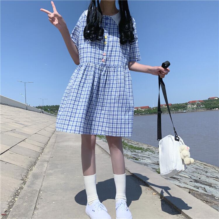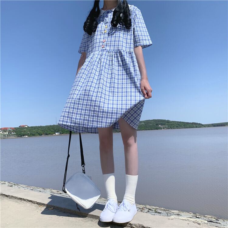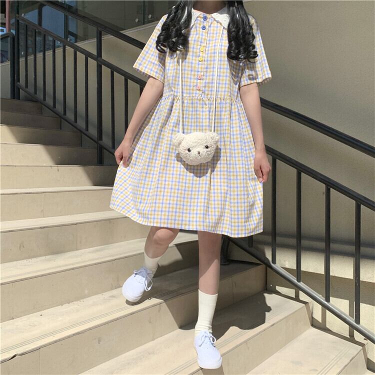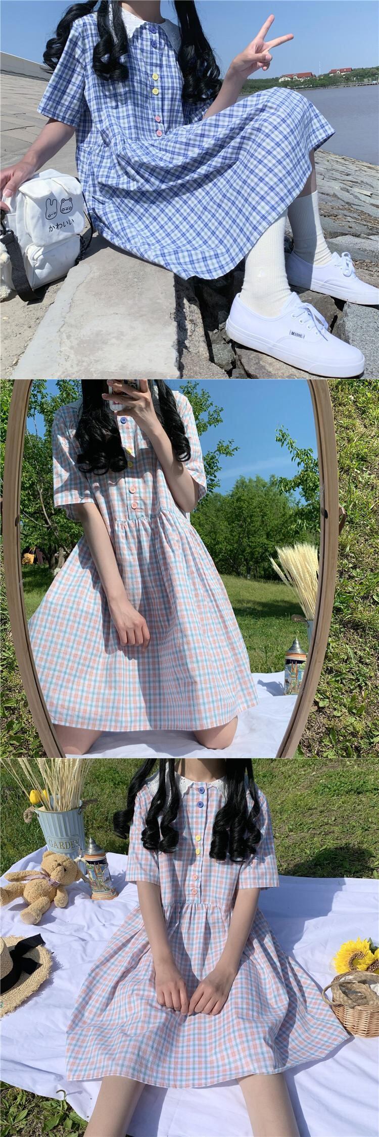 ✞ スカート カラーレース♬カワイイ♥半袖スリーブチェック柄 ショート ハーフスリーブ 大人ガーリー スウィート キュート カジュアル ✞ゴスロリ SM ミリ 甘ロリ クラロリ 和ロリ エレガント 黒ロリ 姫ロリ 華ロリ BB-BB6571741
