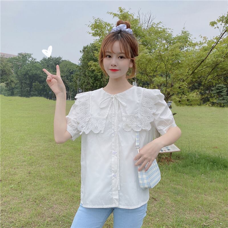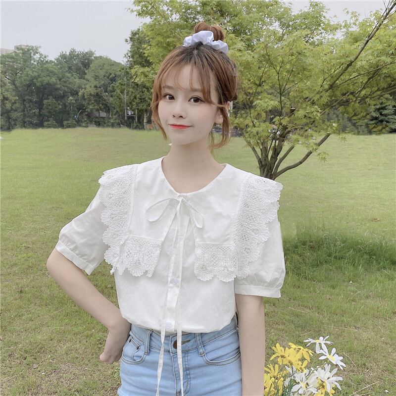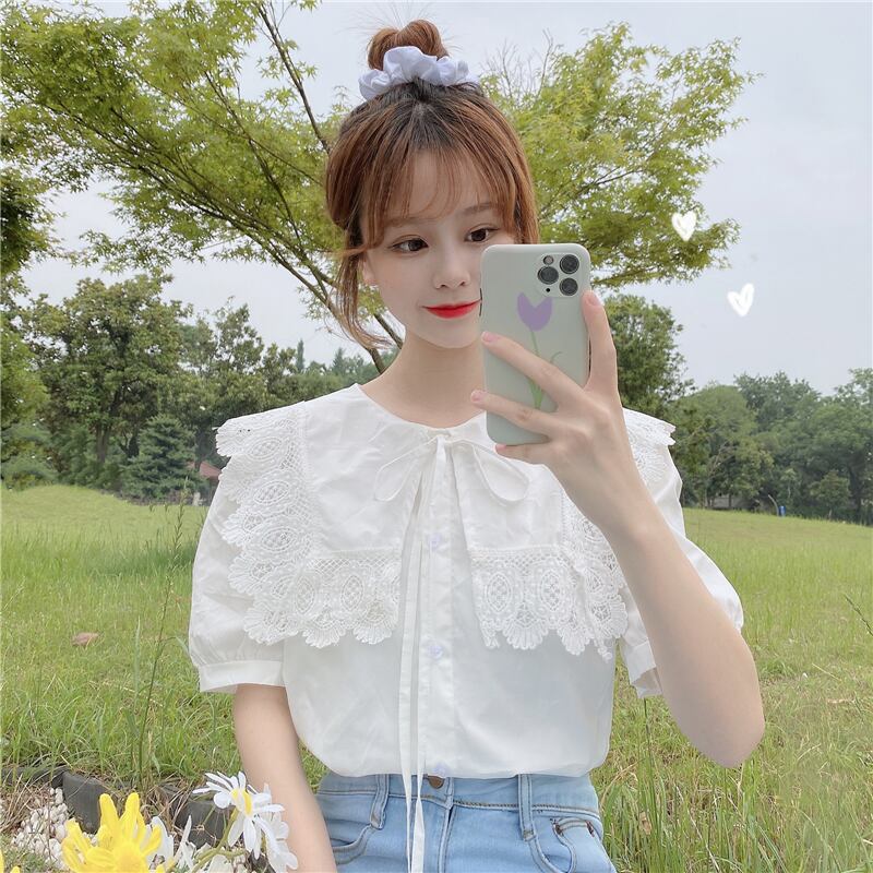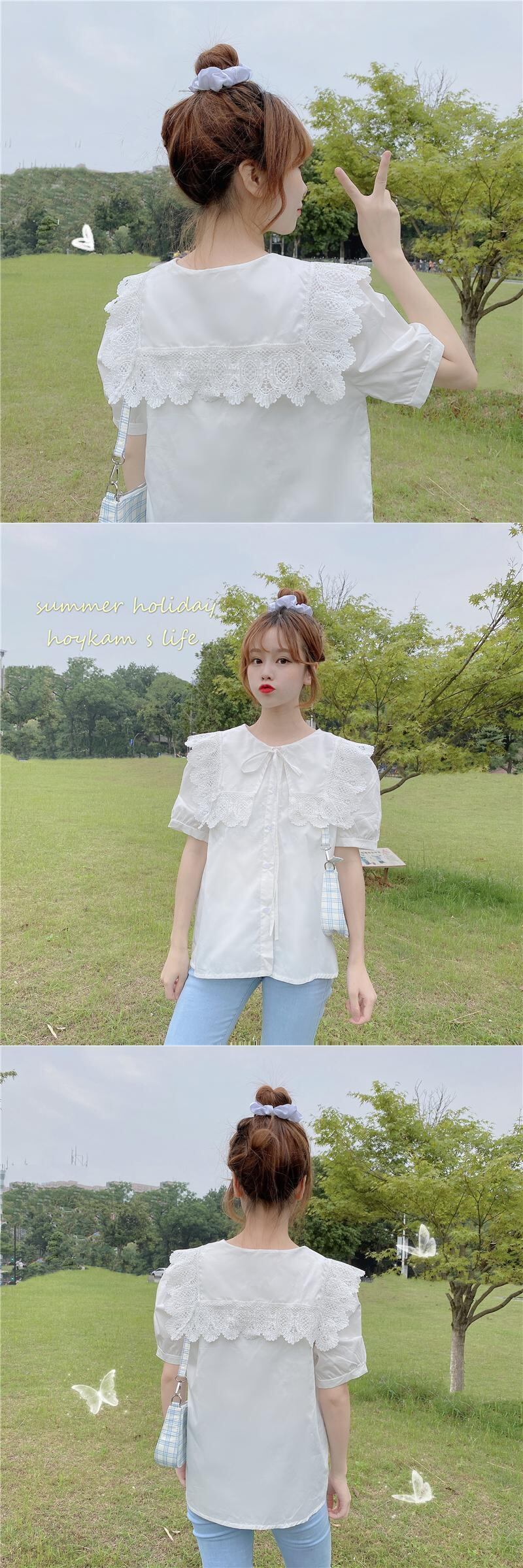 ✞ レースネイビー白スリーブシャツブラウス トップス ホワイト 大人ガーリー スウィート キュート カジュアル ✞ゴスロリ SM ミリ 甘ロリ クラロリ 和ロリ エレガント 黒ロリ 姫ロリ 華ロリ BB-BB6616159