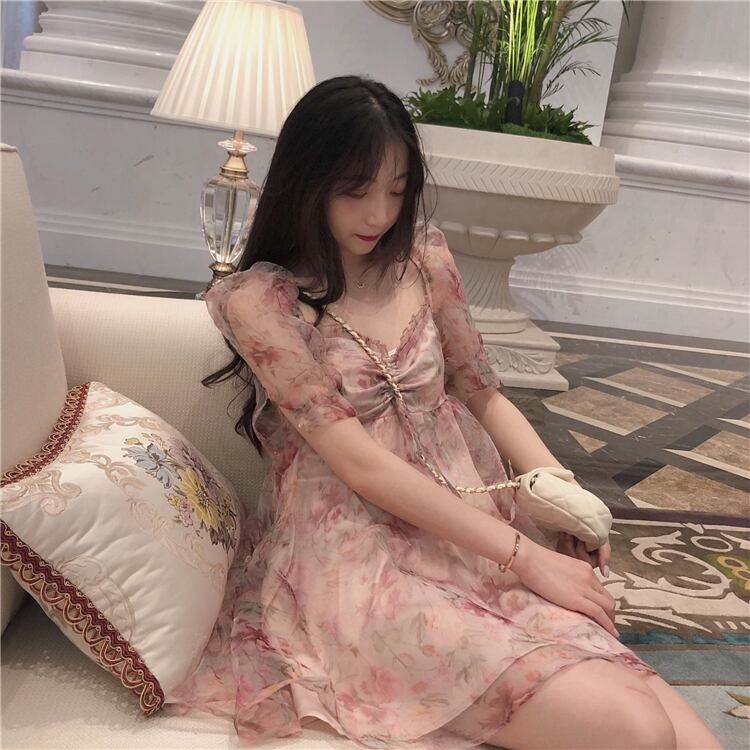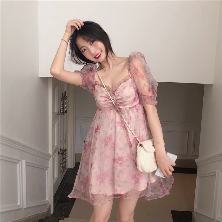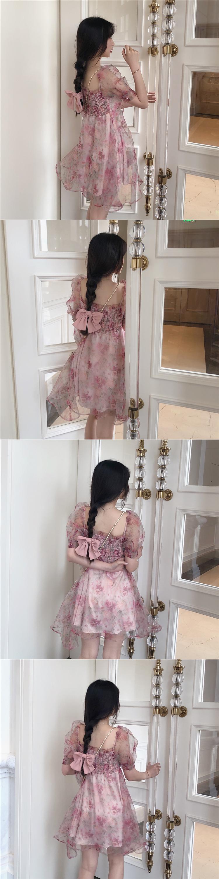 ✞ スタンダード花柄ウエストすっきり☆着痩せメッシュスリーブプリーツ レトロ 大人ガーリー スウィート キュート カジュアル スクウェア ✞ゴスロリ SM ミリ 甘ロリ クラロリ 和ロリ エレガント 黒ロリ 姫ロリ 華ロリ BB-BB1611175