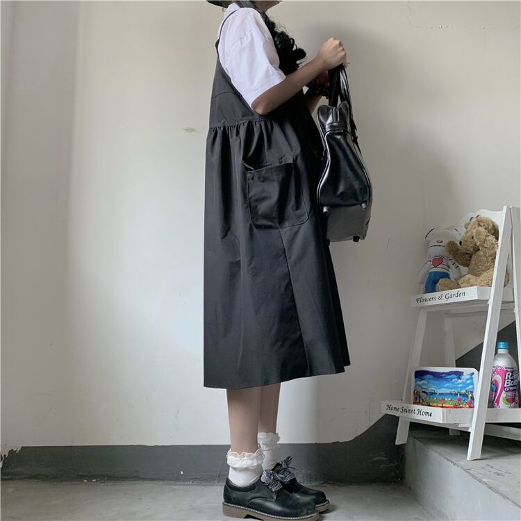 色:シャツ(蝶ネクタイ付き),黒のオーバーオールワンピース