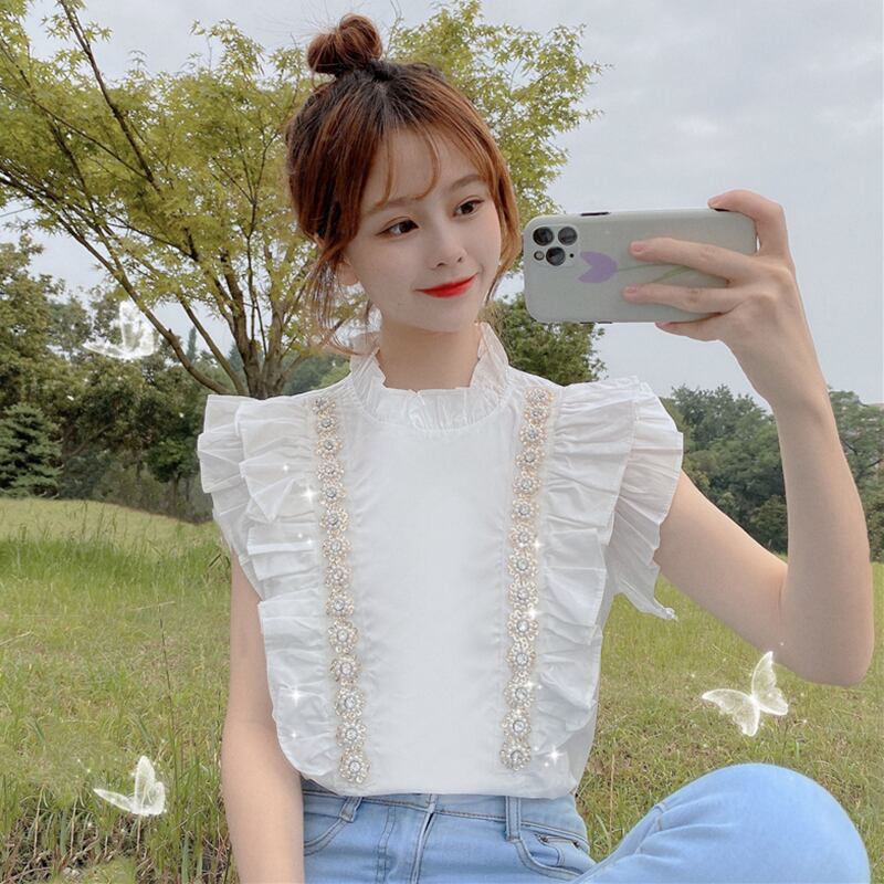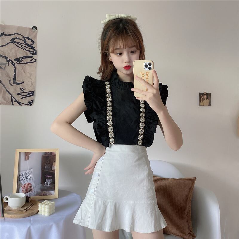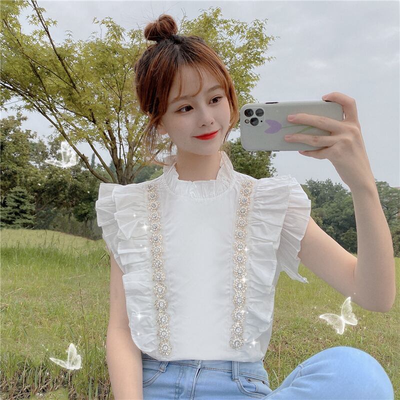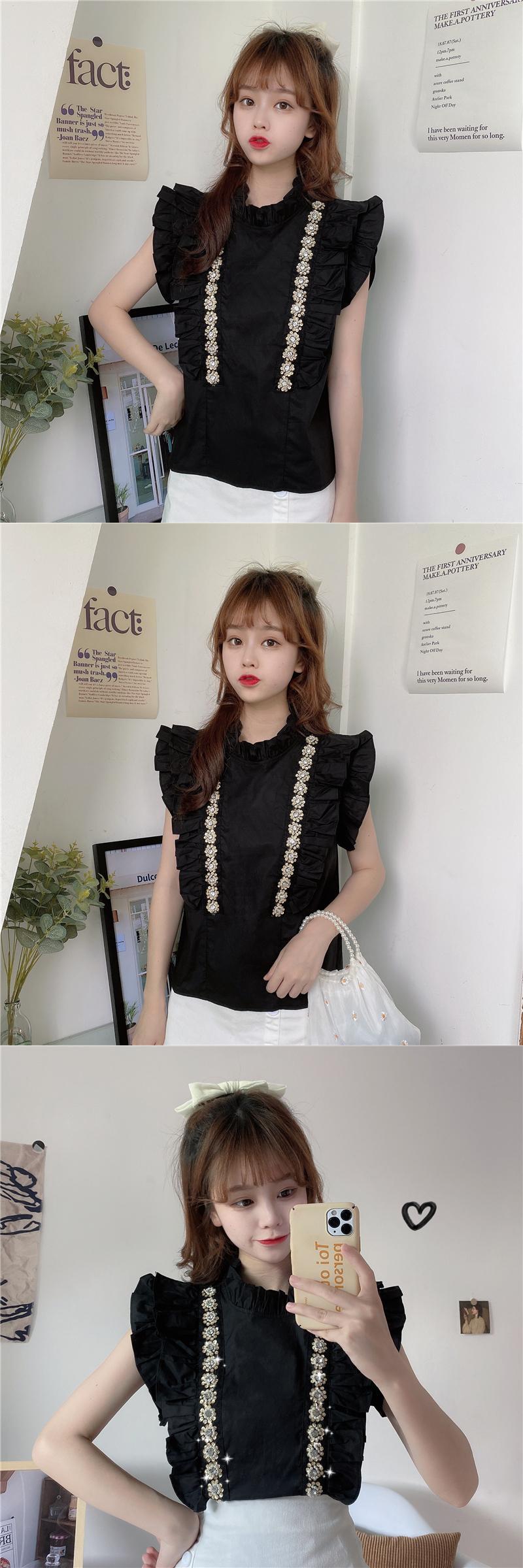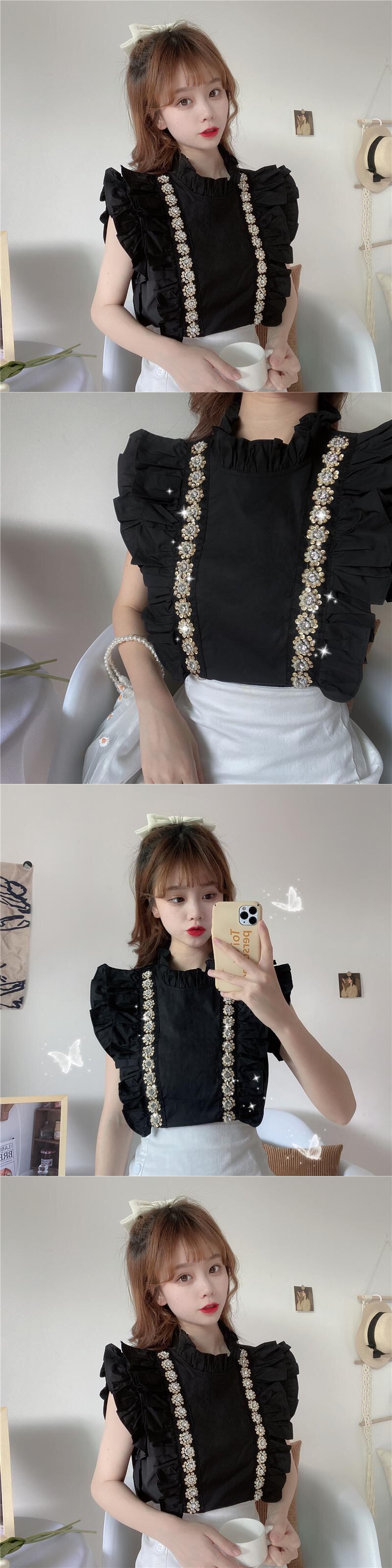 ✞ スタンドカラースリーブビーズ ショートシャツブラウス 大人ガーリー スウィート キュート カジュアル ノースリーブ ステッチ ✞ゴスロリ SM ミリ 甘ロリ クラロリ 和ロリ エレガント 黒ロリ 姫ロリ 華ロリ BB-BB8318380