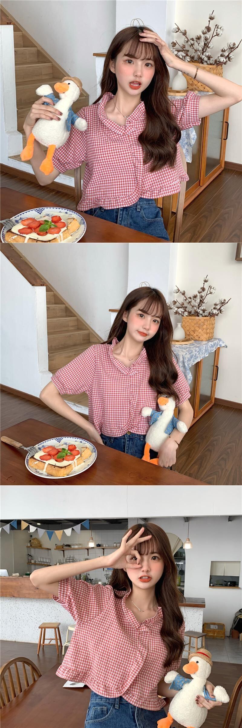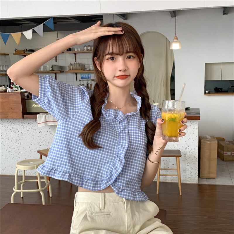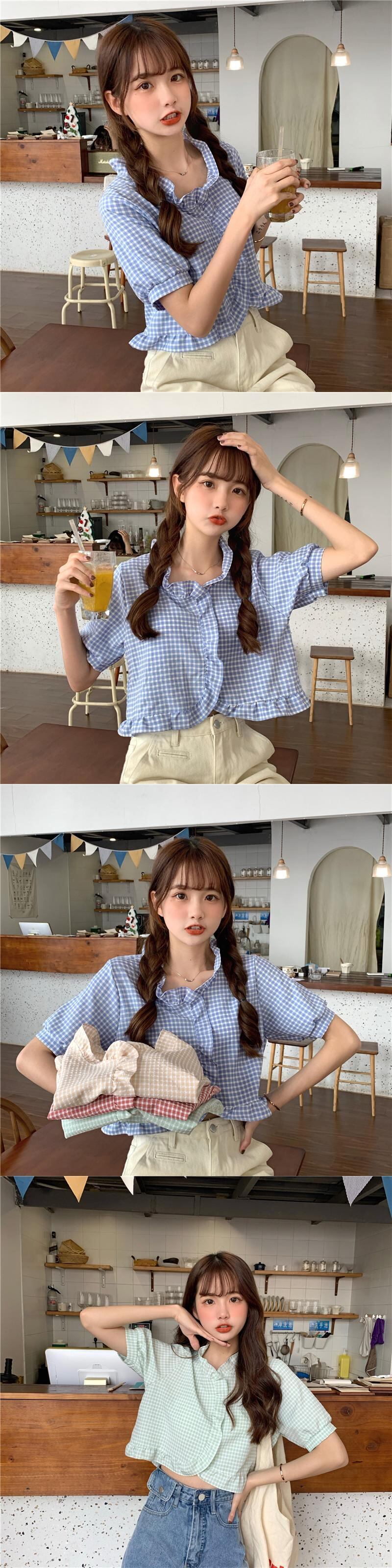 ✞ シャツブラウスフリルチェック柄スリーブショートトップス ラッフル 大人ガーリー スウィート キュート カジュアル ✞ゴスロリ SM ミリ 甘ロリ クラロリ 和ロリ エレガント 黒ロリ 姫ロリ 華ロリ BB-BB0658307