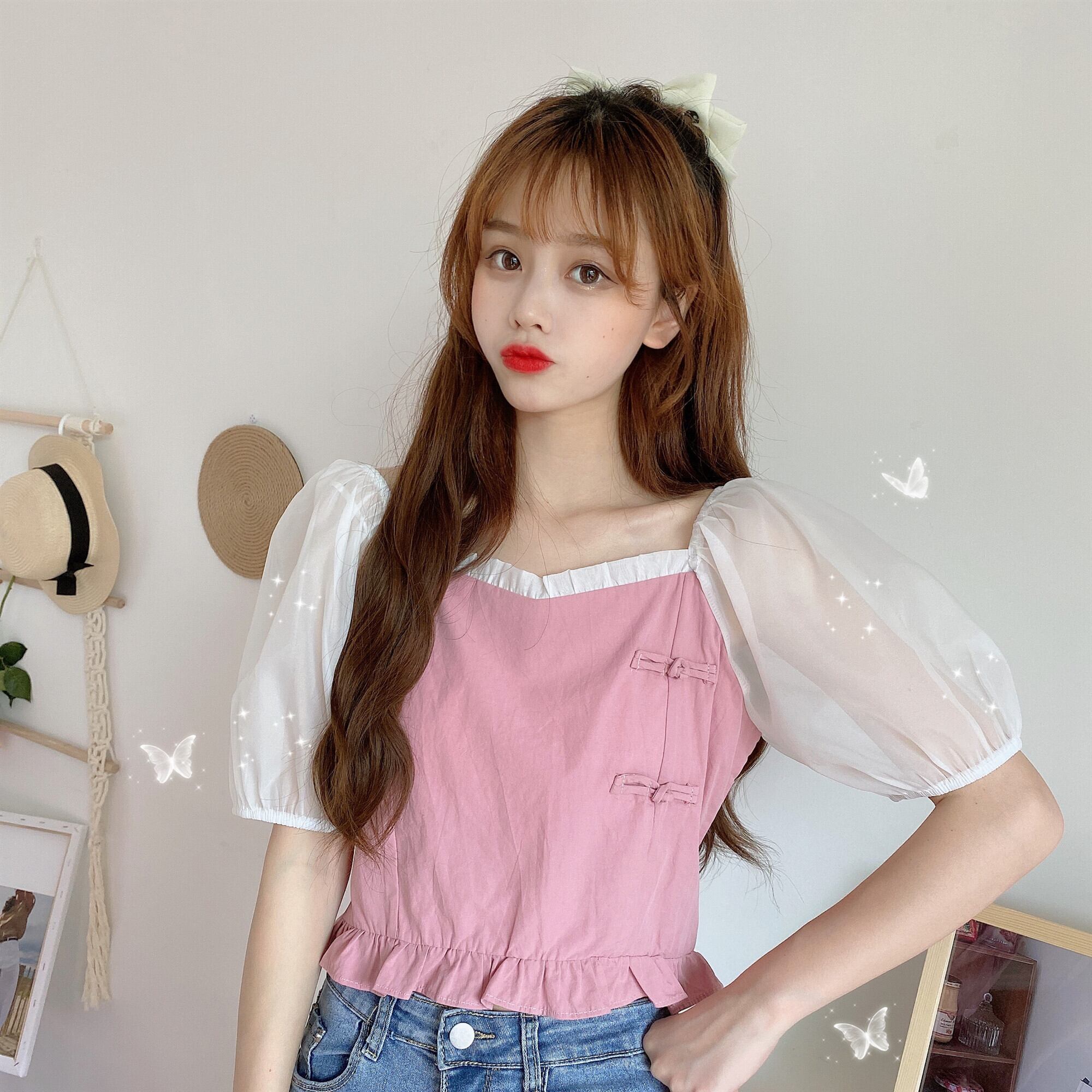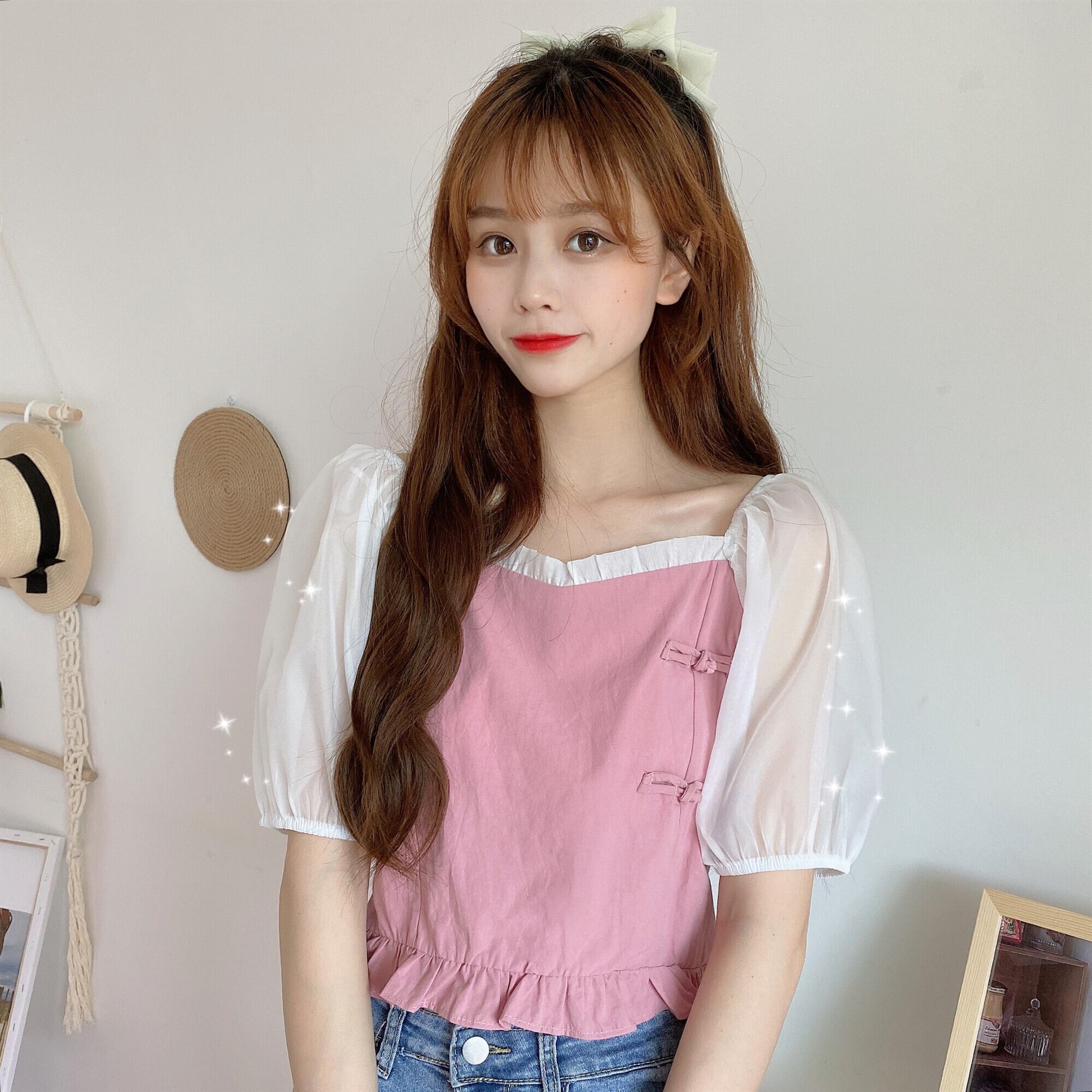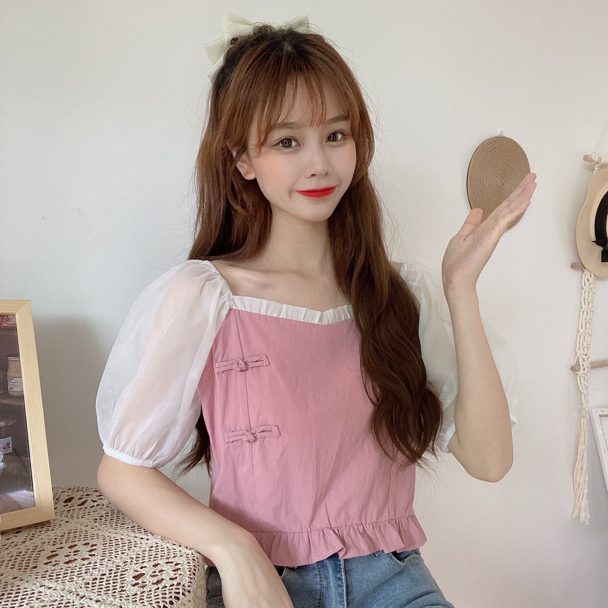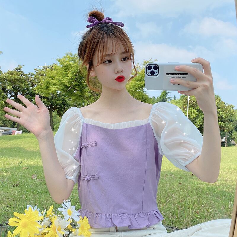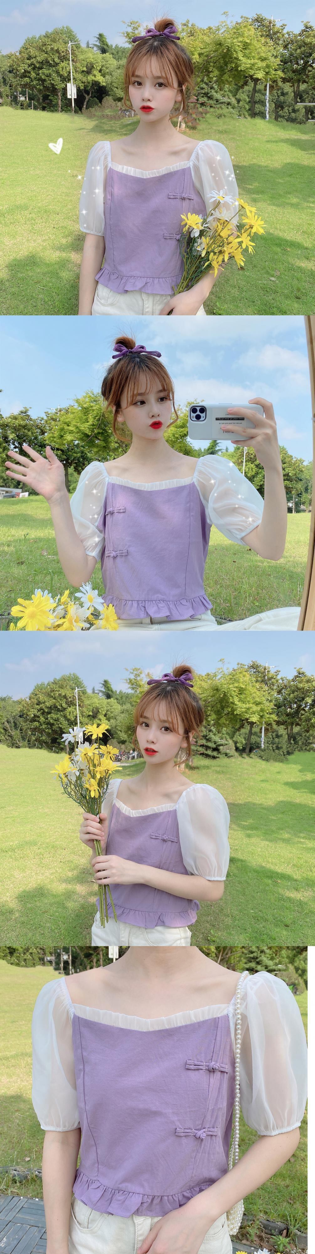 ✞ シャツブラウススタンダードバックルメッシュスリーブショートトップス レトロ 大人ガーリー スウィート キュート カジュアル スクウェア ✞ゴスロリ SM ミリ 甘ロリ クラロリ 和ロリ エレガント 黒ロリ 姫ロリ 華ロリ BB-BB1150776