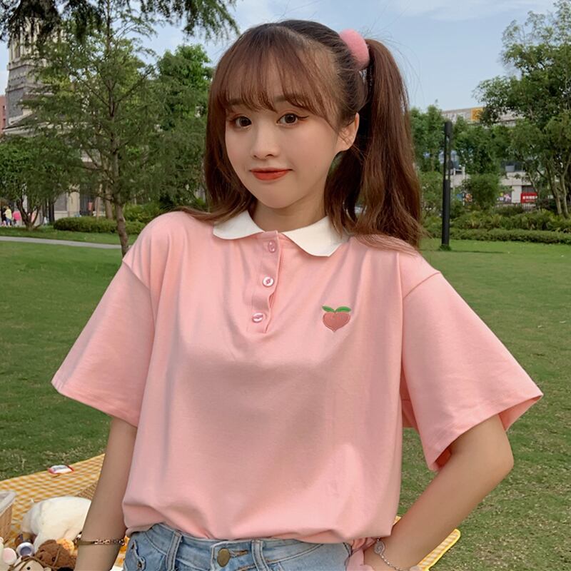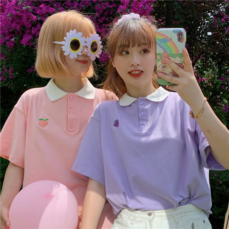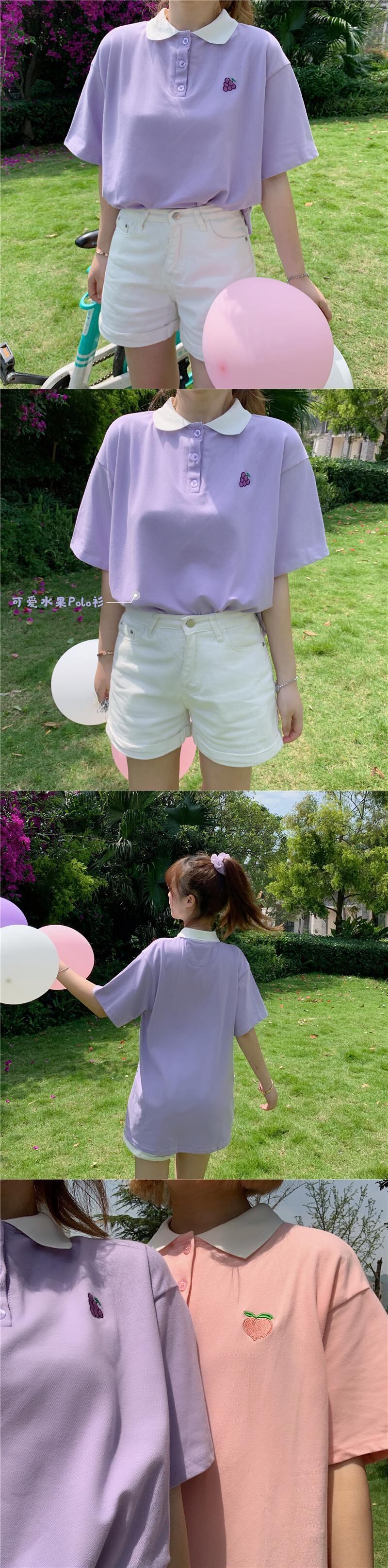 ✞ もも ぶどう刺繍トップス 襟付きボタンシャツブラウス Tシャツ ガーリー スウィート キュート カジュアル ✞ゴスロリ SM ミリ 甘ロリ クラロリ 和ロリ エレガント 黒ロリ 姫ロリ 華ロリ BB-BB5730871