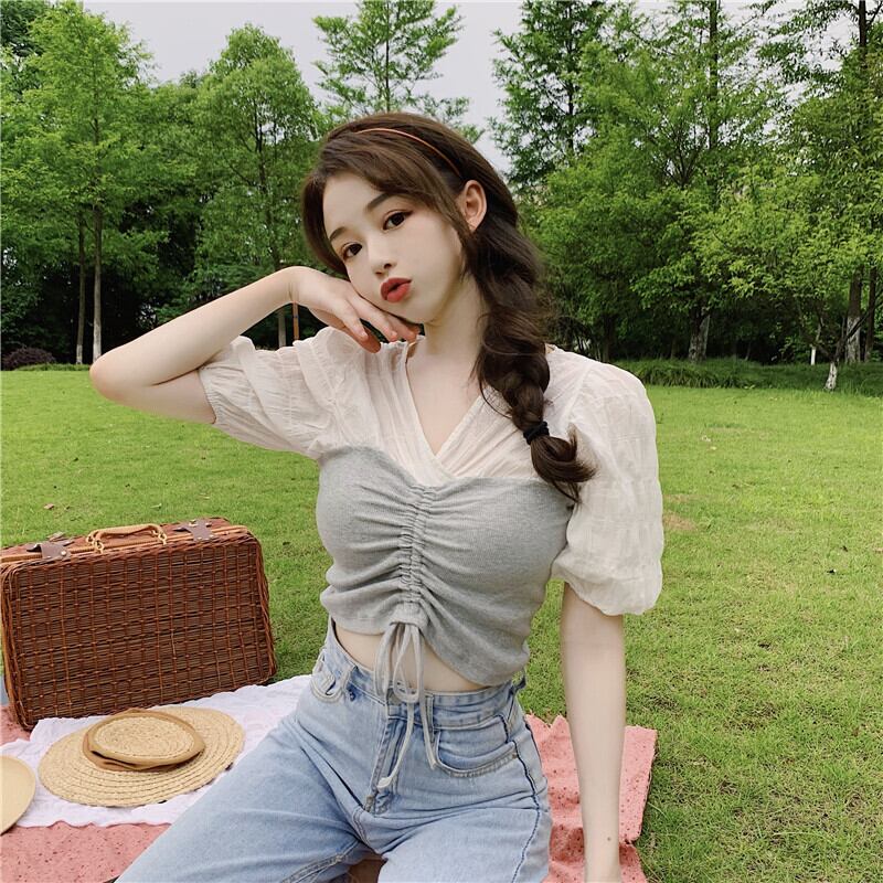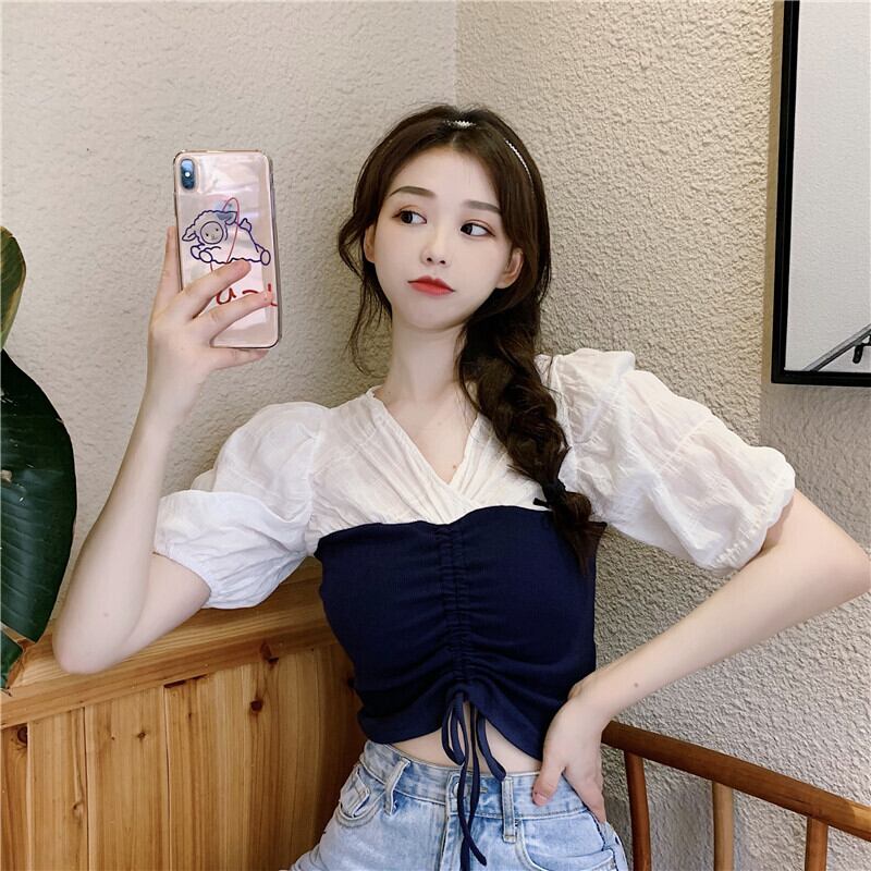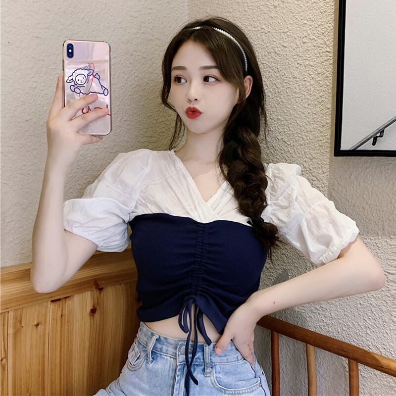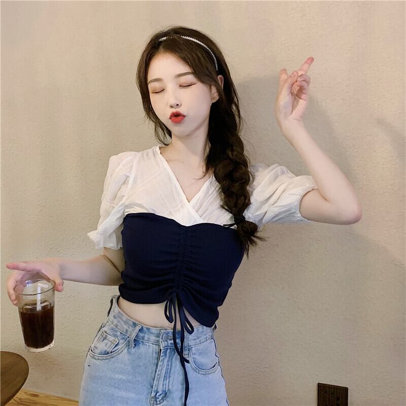 ✞ スリムカラーVネックギャザープリーツレーススリーブショートシャツブラウス ✞ゴスロリ SM ミリ 甘ロリ クラロリ 和ロリ エレガント 黒ロリ 姫ロリ 華ロリ BB-BB7245052