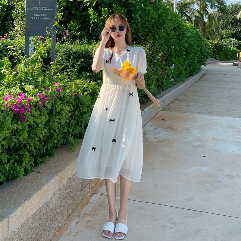 ✞ Vネックリボンスリーブシフォン 大人ガーリー スウィート キュート カジュアル ステッチ ✞ゴスロリ SM ミリ 甘ロリ クラロリ 和ロリ エレガント 黒ロリ 姫ロリ 華ロリ BB-BB0373442