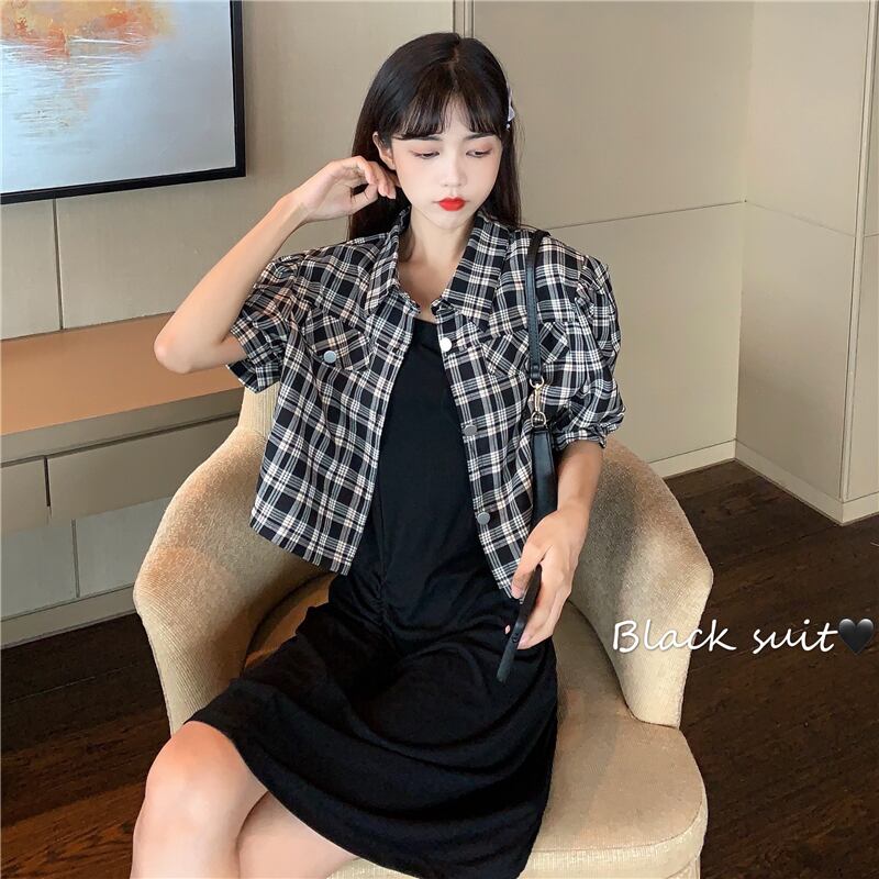✞ チェック柄スリーブショートシャツブラウストップス プリーツ ✞ゴスロリ SM ミリ 甘ロリ クラロリ 和ロリ エレガント 黒ロリ 姫ロリ 華ロリ BB-BB6783234