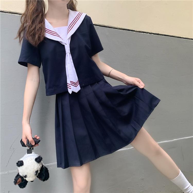 ✞ ネイビー半袖スリーブトップス プリーツスカート ショート ハーフスリーブ ✞ゴスロリ SM ミリ 甘ロリ クラロリ 和ロリ エレガント 黒ロリ 姫ロリ 華ロリ BB-BB3844883