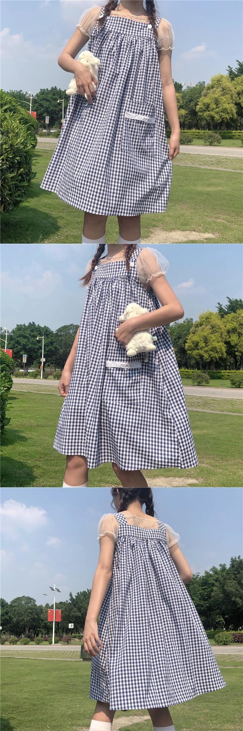 色:ラティスストラップシングルピース,チェック柄ワンピース,シングルピース