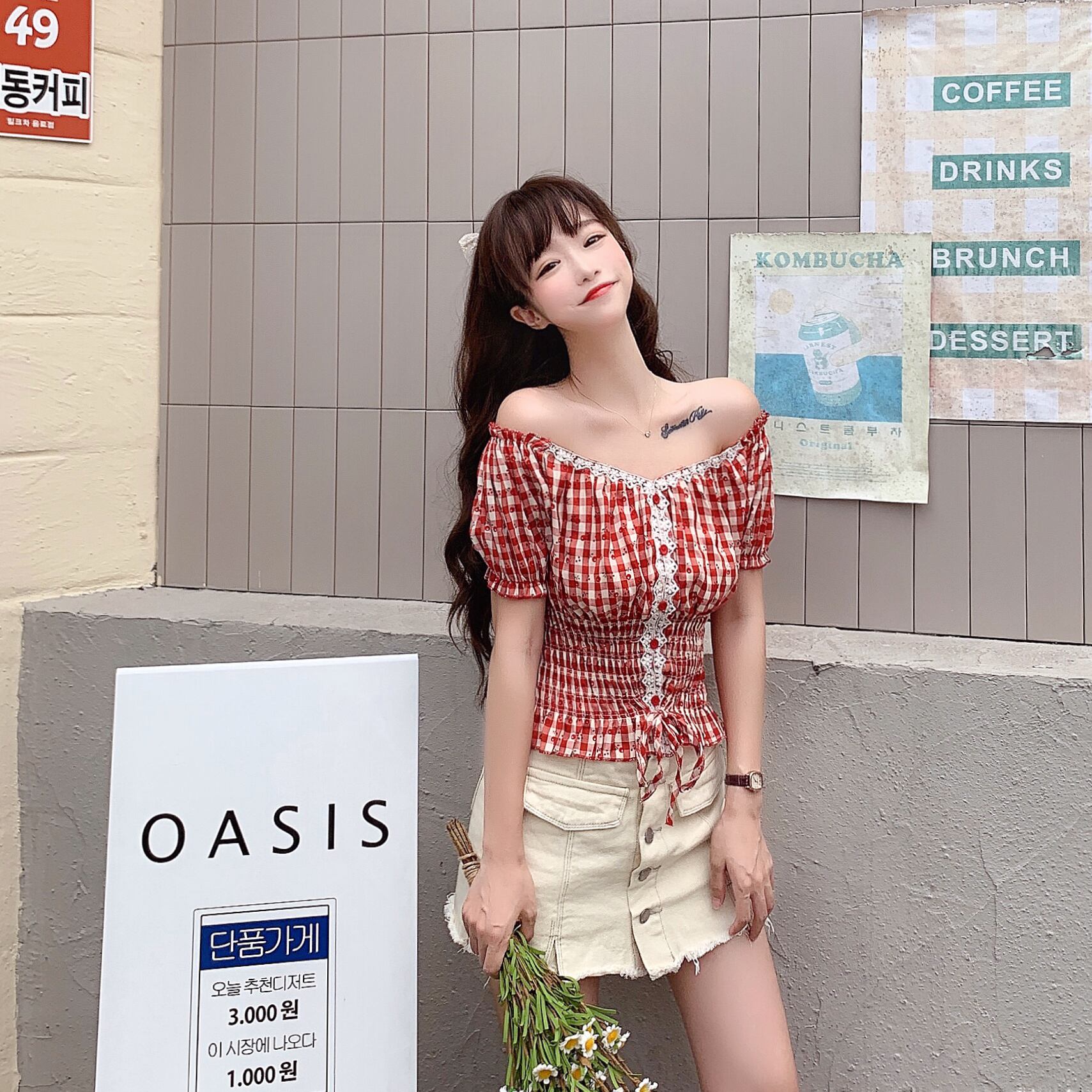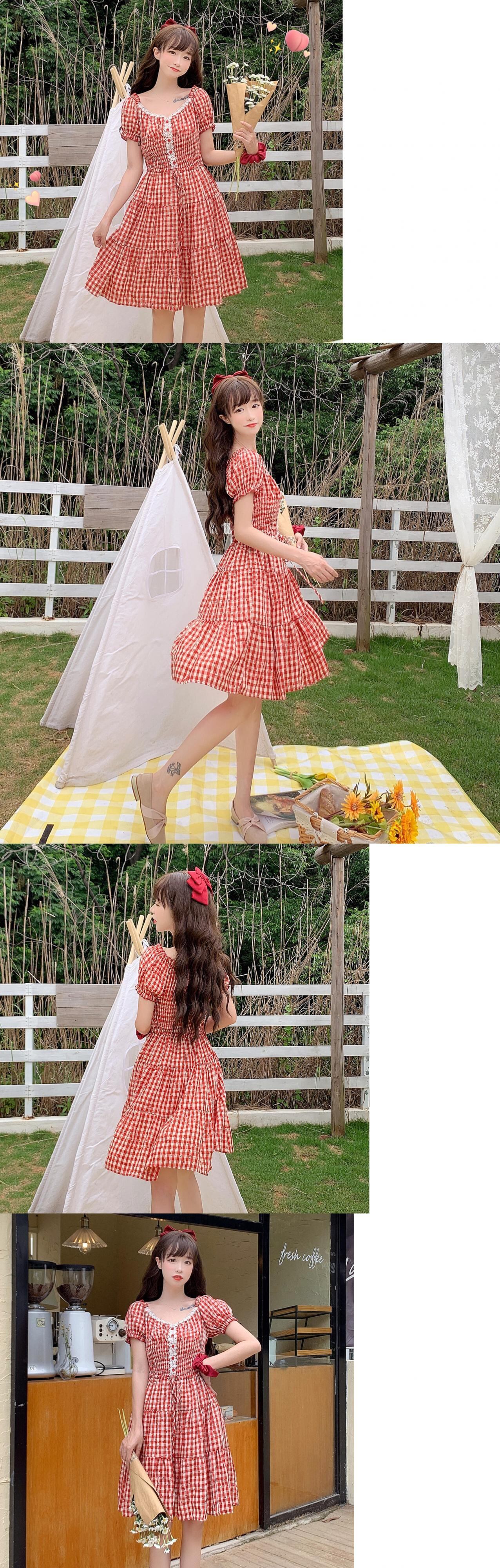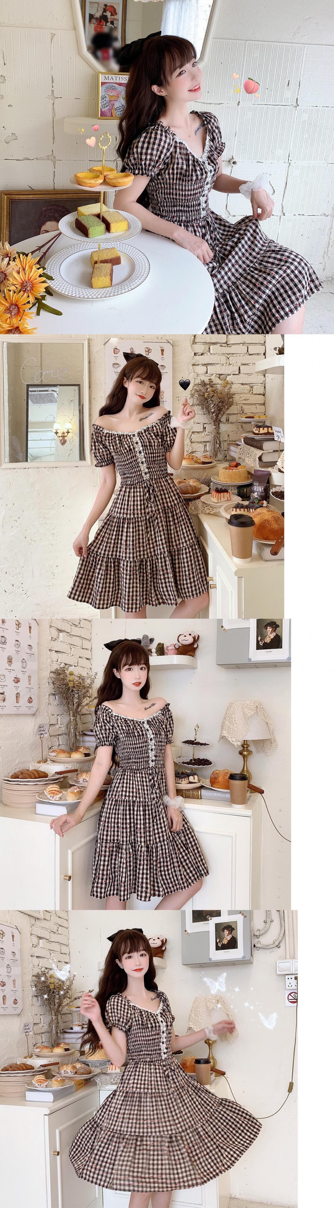 ✞ スリーブ花柄ウエストすっきり☆着痩せチェック柄スカート 大人ガーリー スウィート キュート カジュアル ✞ゴスロリ SM ミリ 甘ロリ クラロリ 和ロリ エレガント 黒ロリ 姫ロリ 華ロリ BB-BB0527252