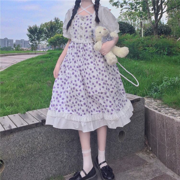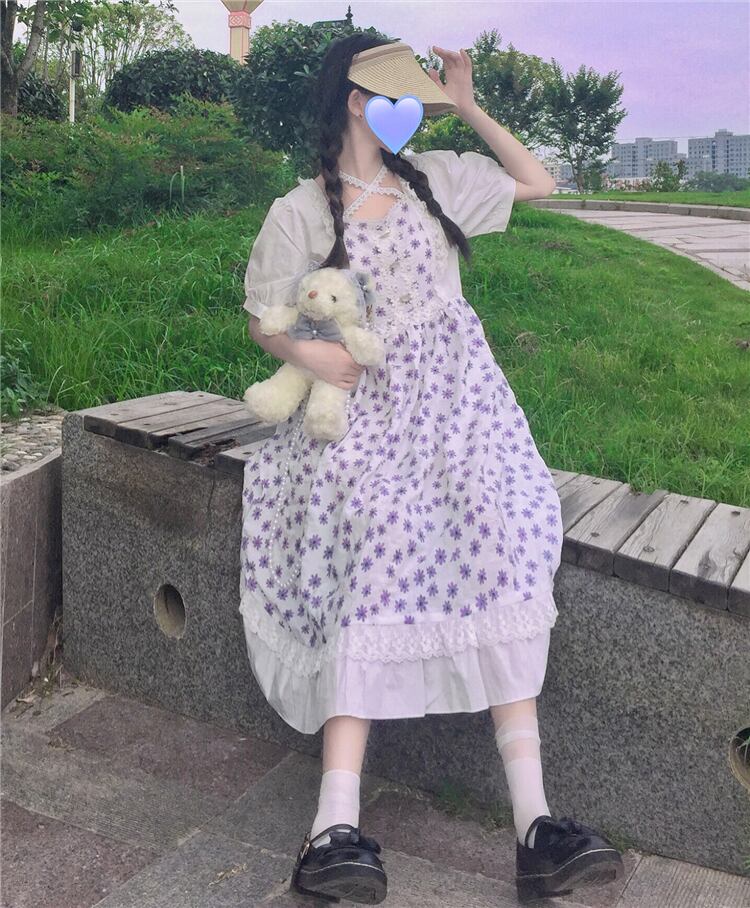 ✞ 花柄スリーブウエストすっきり☆着痩せバックストラップ 大人ガーリー スウィート キュート カジュアル スクウェア ✞ゴスロリ SM ミリ 甘ロリ クラロリ 和ロリ エレガント 黒ロリ 姫ロリ 華ロリ BB-BB9084947