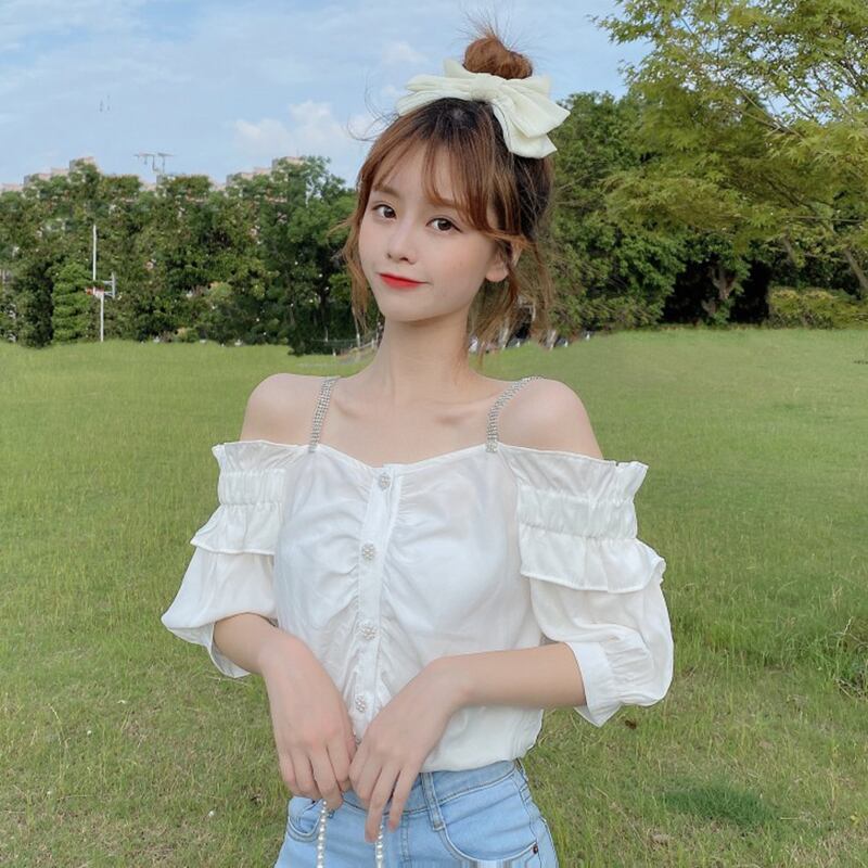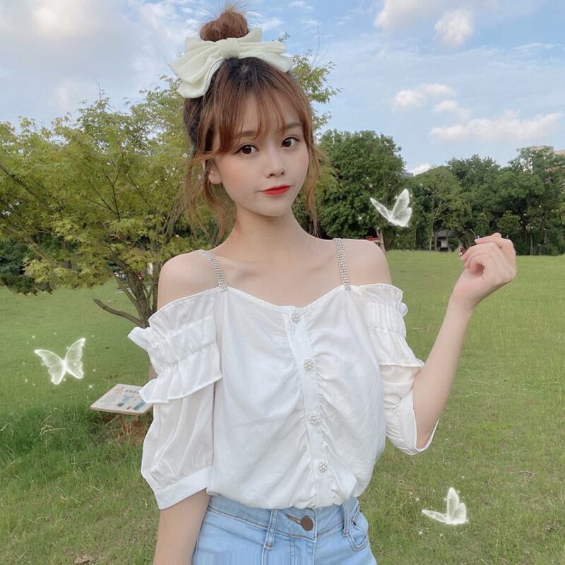 ✞ ストラップレスシフォンシャツブラウスラインストーンパールバックルシングルブレスト 大人ガーリー スウィート キュート カジュアル 真珠 ✞ゴスロリ SM ミリ 甘ロリ クラロリ 和ロリ エレガント 黒ロリ 姫ロリ 華ロリ BB-BB8436708