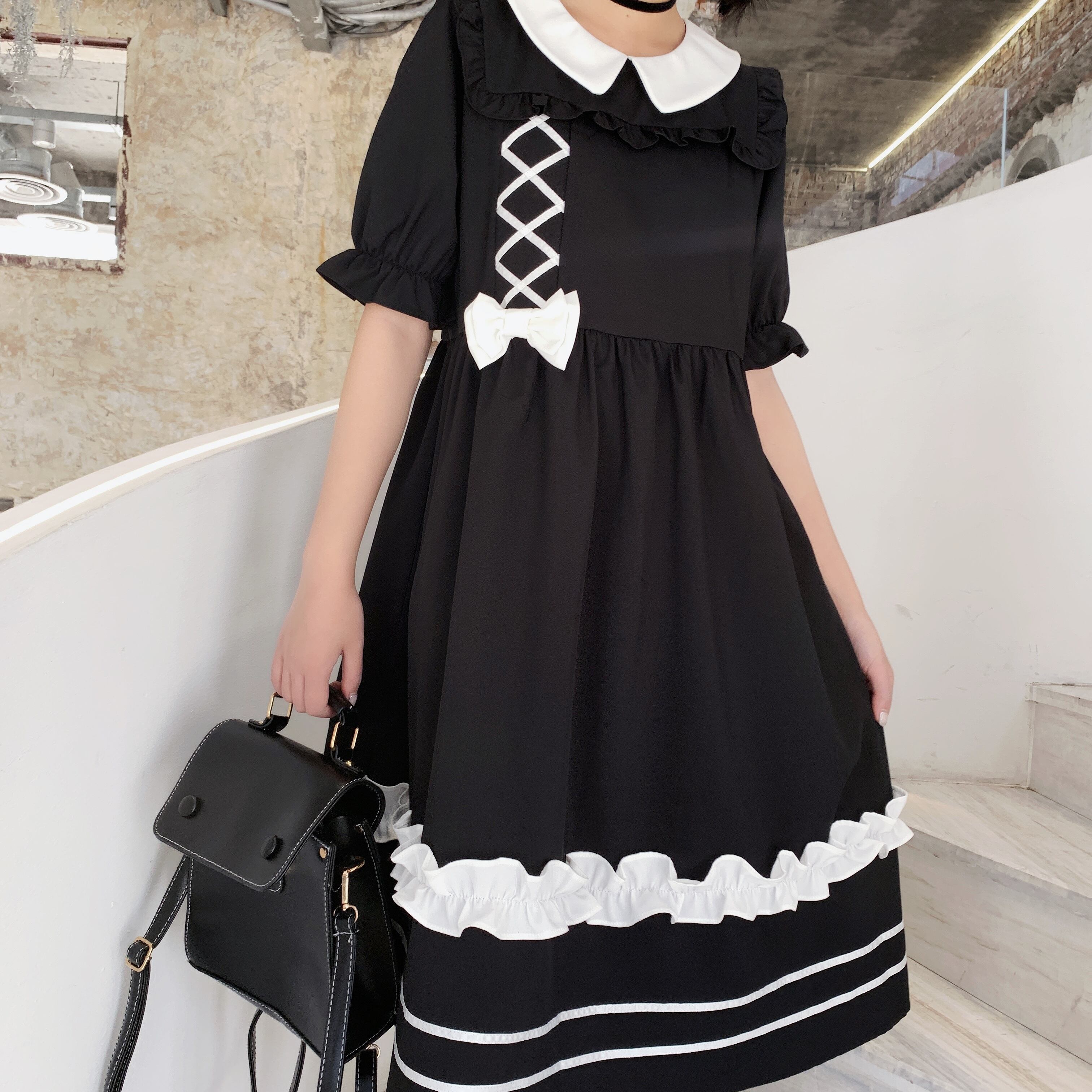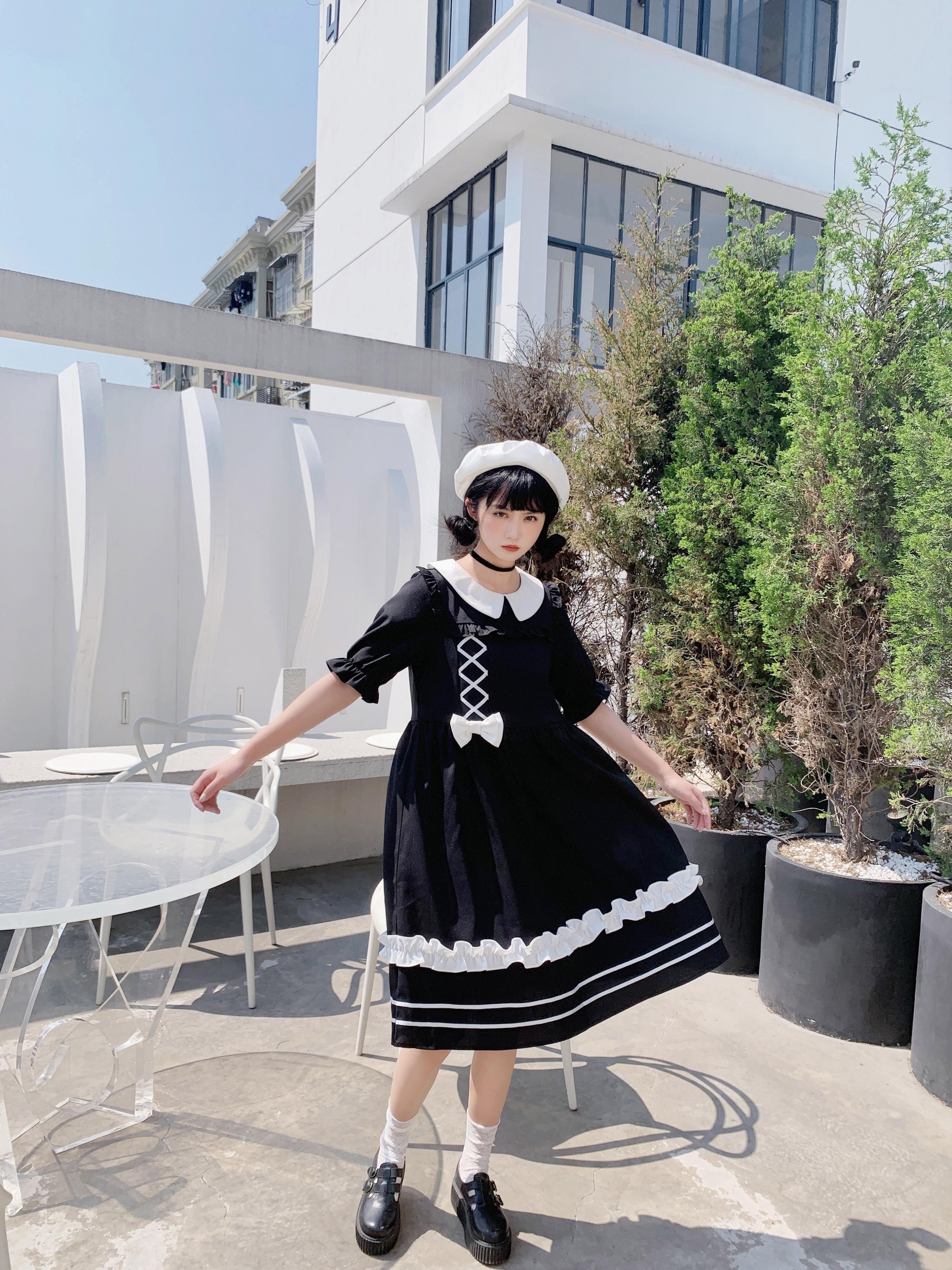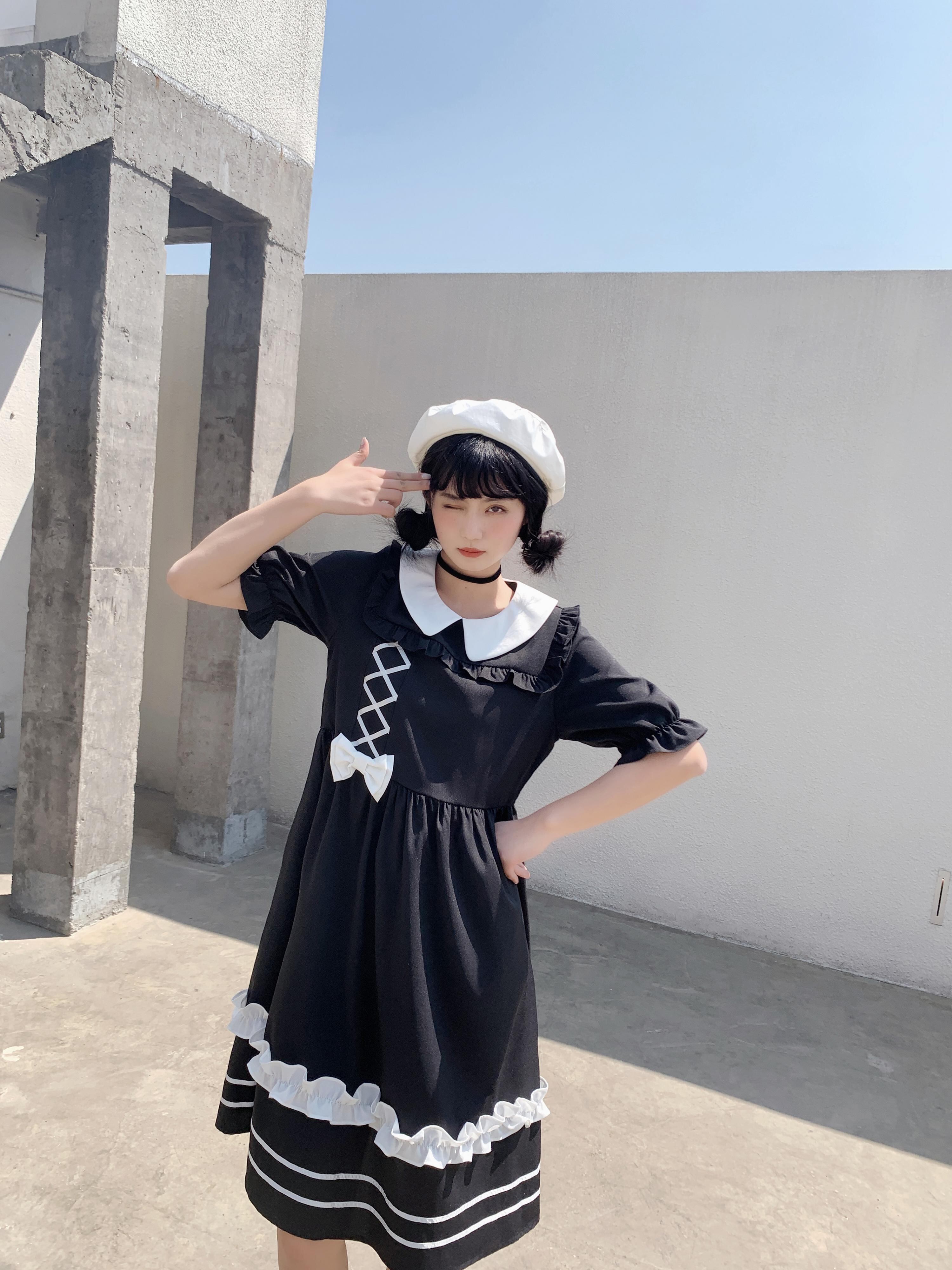 ✞ スカート きれいめ☆スタンダードリボン半袖スリーブ ショート レトロ ハーフスリーブ 大人ガーリー スウィート キュート カジュアル ステッチ ✞ゴスロリ SM ミリ 甘ロリ クラロリ 和ロリ エレガント 黒ロリ 姫ロリ 華ロリ BB-BB4885468