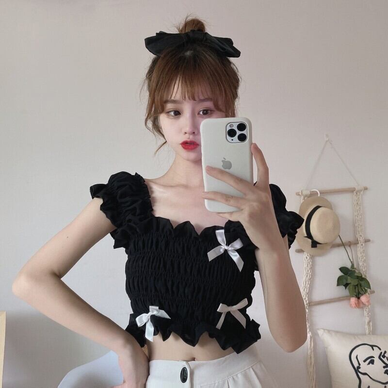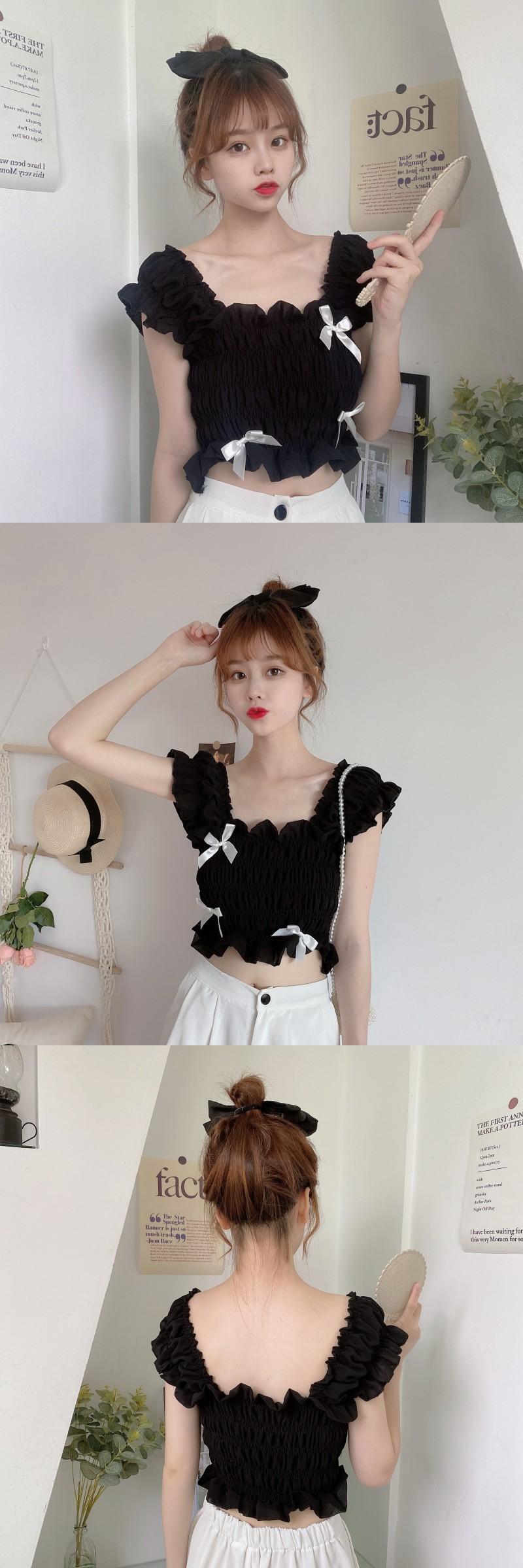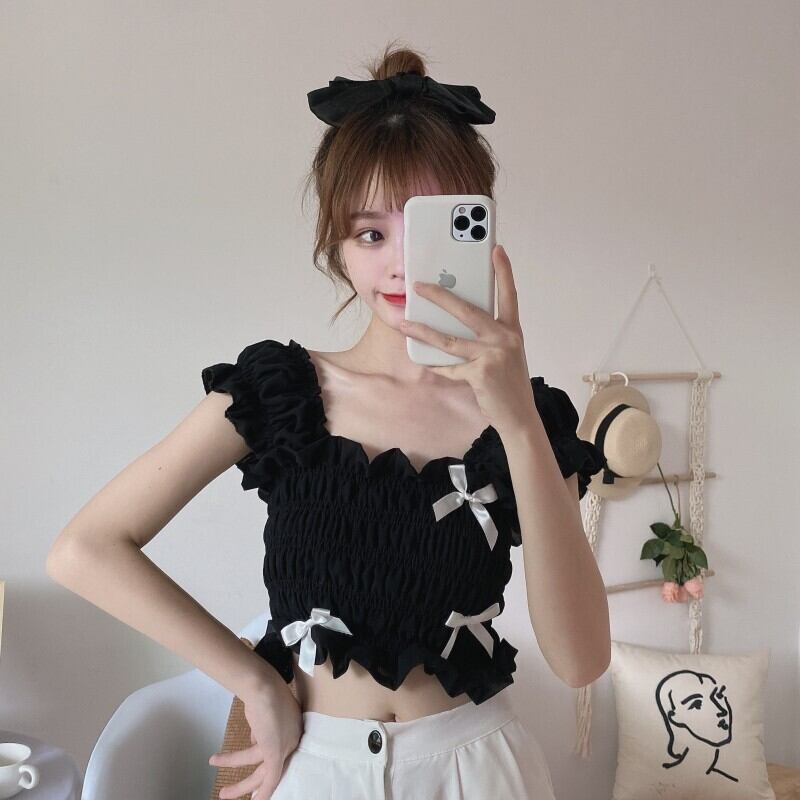 ✞ リボンストレッチシフォントップス エラスティック 伸縮 大人ガーリー スウィート キュート カジュアル ✞ゴスロリ SM ミリ 甘ロリ クラロリ 和ロリ エレガント 黒ロリ 姫ロリ 華ロリ BB-BB4631792