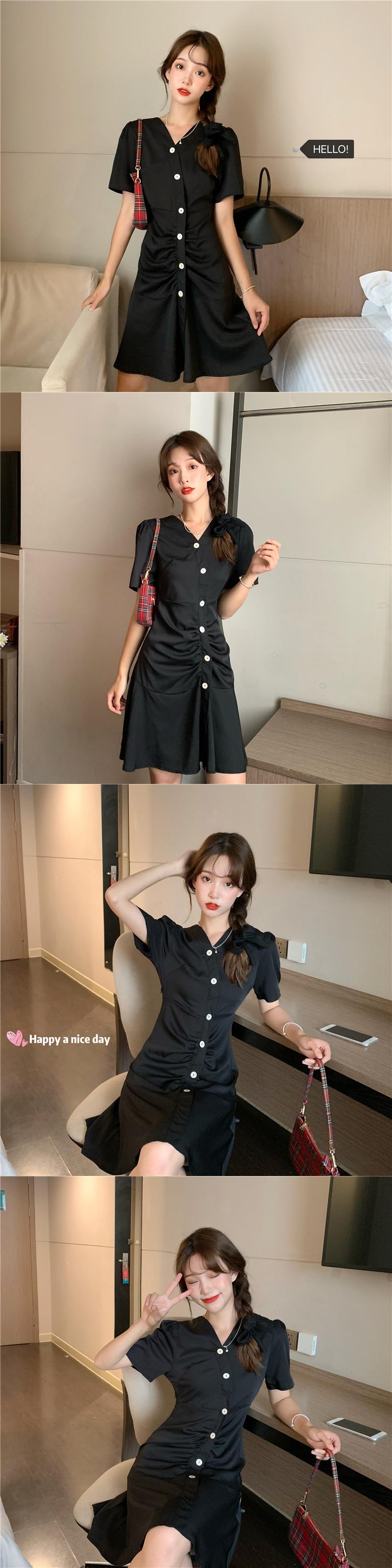 ✞ サマーVネックウエストすっきり☆着痩せプリーツブレストソリッド カラー 夏物 ソリッドカラー ✞ゴスロリ SM ミリ 甘ロリ クラロリ 和ロリ エレガント 黒ロリ 姫ロリ 華ロリ BB-BB3920059