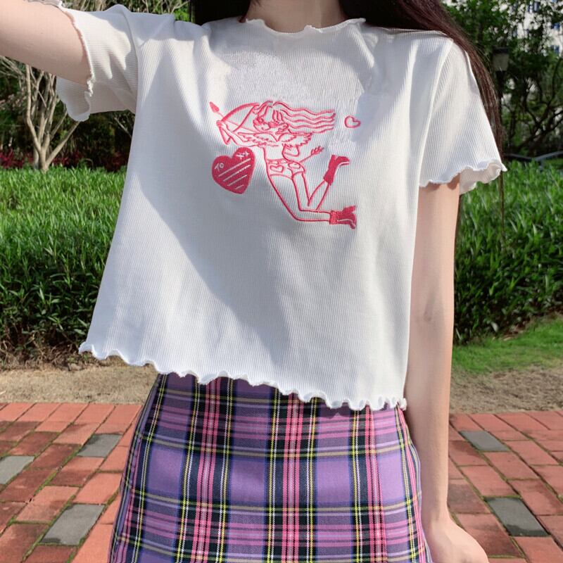 ✞ Tシャツ ラウンドネックスリムショートトップス 刺繍 大人ガーリー スウィート キュート カジュアル ✞ゴスロリ SM ミリ 甘ロリ クラロリ 和ロリ エレガント 黒ロリ 姫ロリ 華ロリ BB-BB9448757