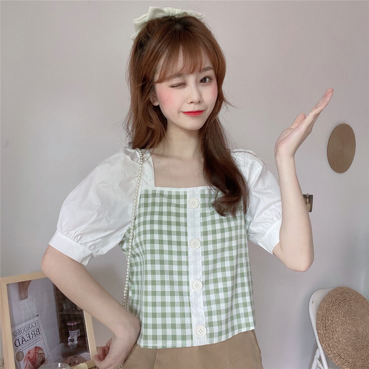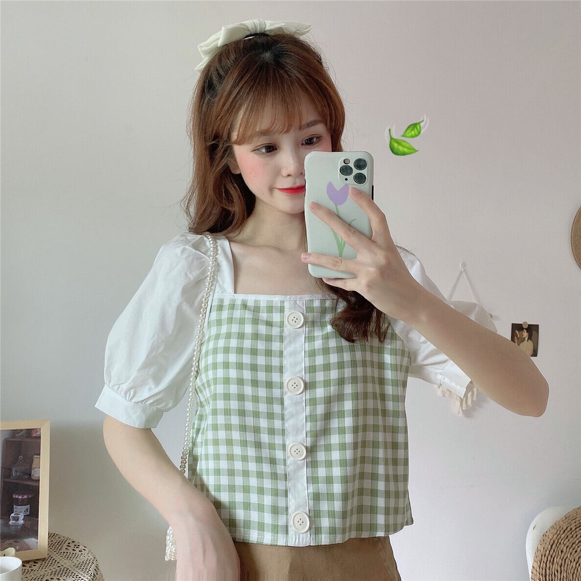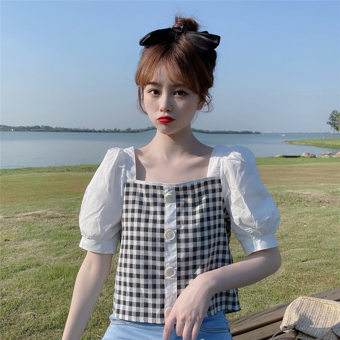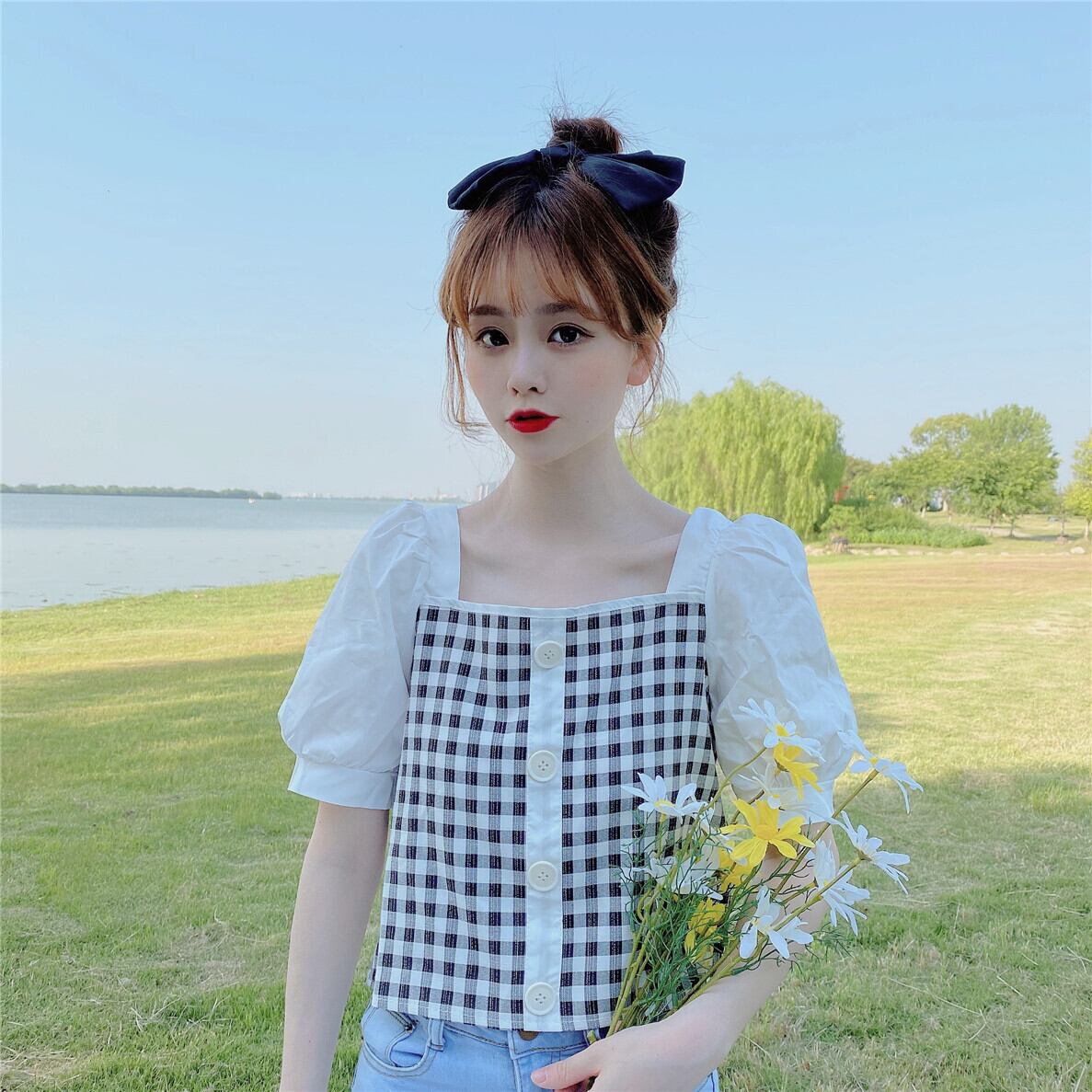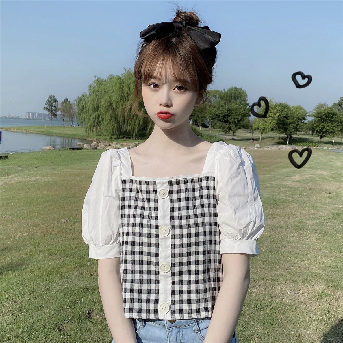 ✞ シャツブラウススリーブブラック白チェック柄スリムショート ホワイト スクウェア ✞ゴスロリ SM ミリ 甘ロリ クラロリ 和ロリ エレガント 黒ロリ 姫ロリ 華ロリ BB-BB2950305