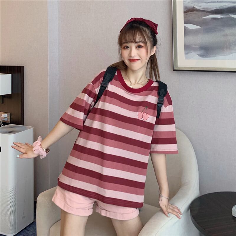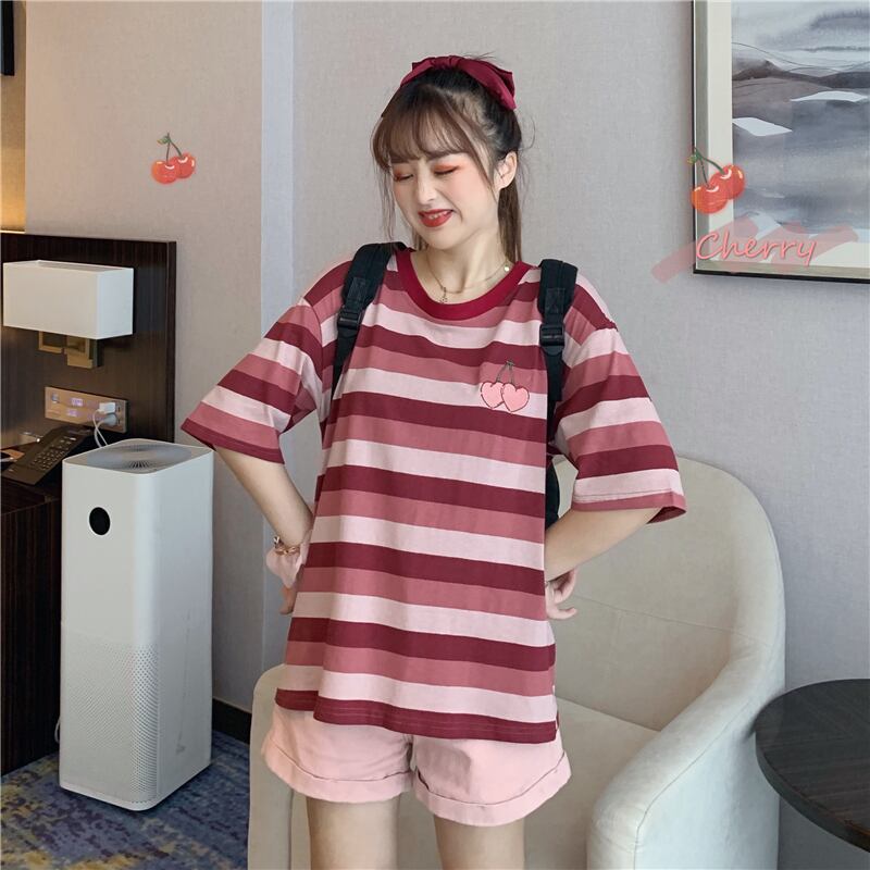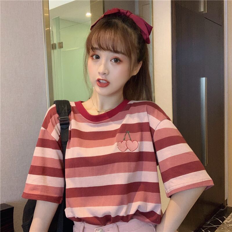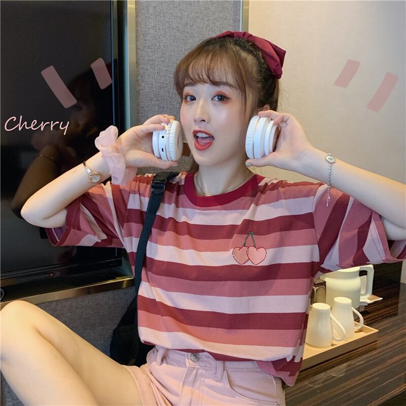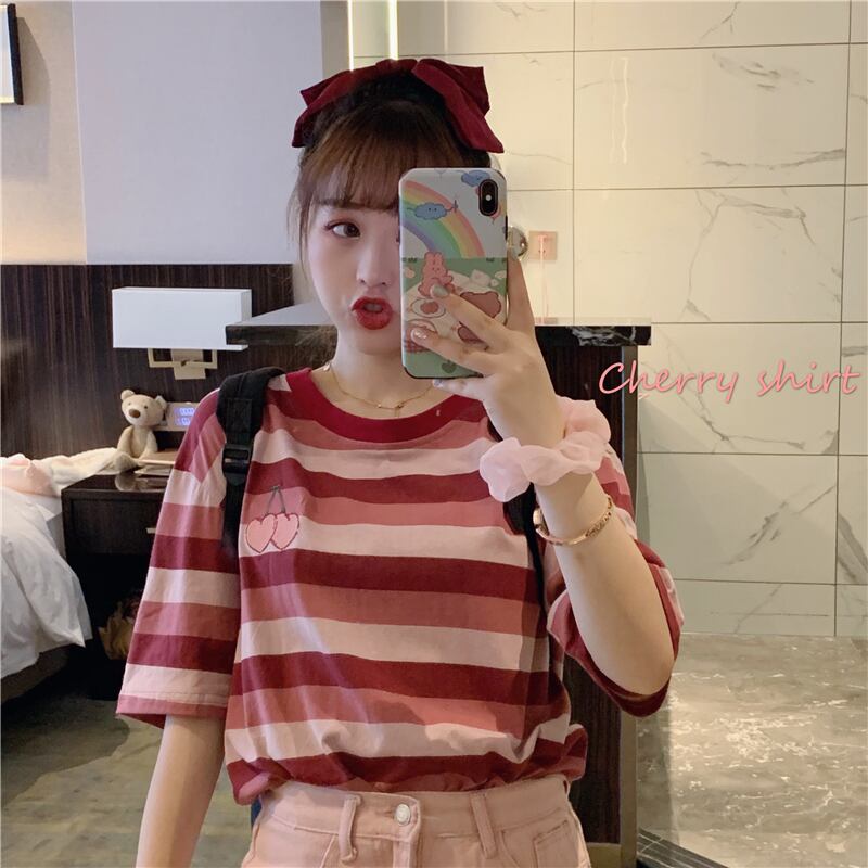 ✞ Tシャツ シャツブラウスラウンドネックカラーストライプ刺繍 ✞ゴスロリ SM ミリ 甘ロリ クラロリ 和ロリ エレガント 黒ロリ 姫ロリ 華ロリ BB-BB5594657
