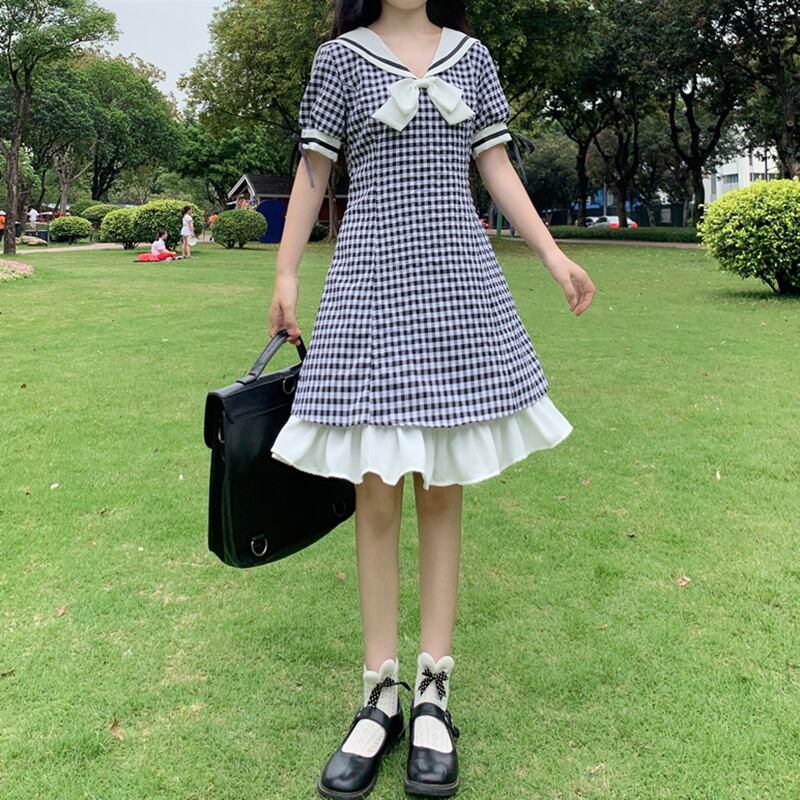 ✞ きれいめ☆ブラックチェック柄スカート ネイビーレース ✞ゴスロリ SM ミリ 甘ロリ クラロリ 和ロリ エレガント 黒ロリ 姫ロリ 華ロリ BB-BB6710822