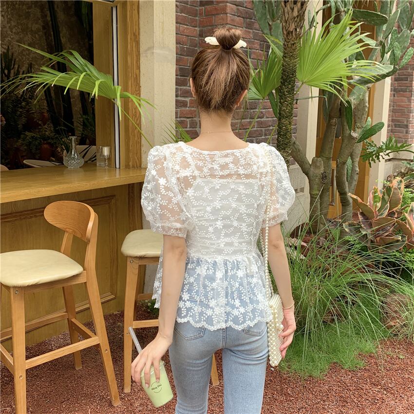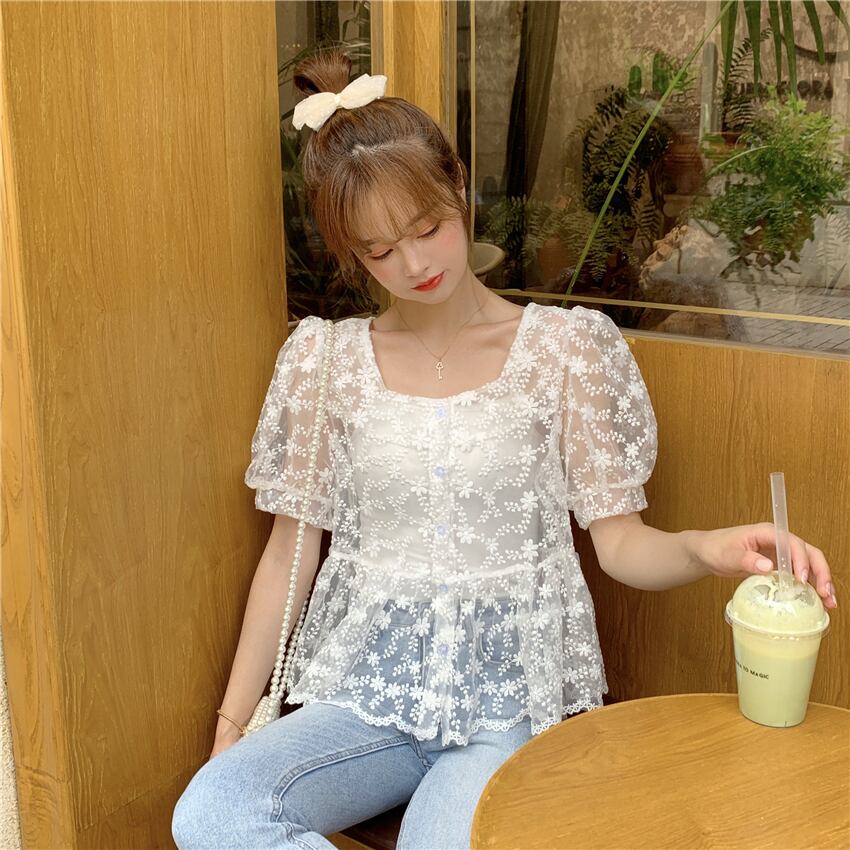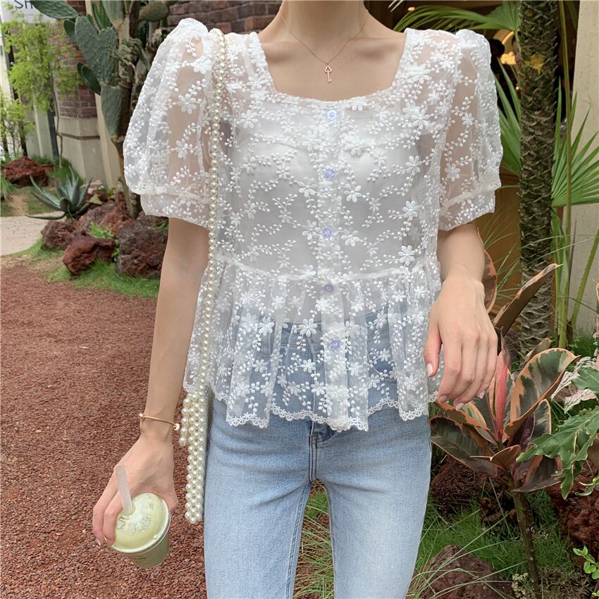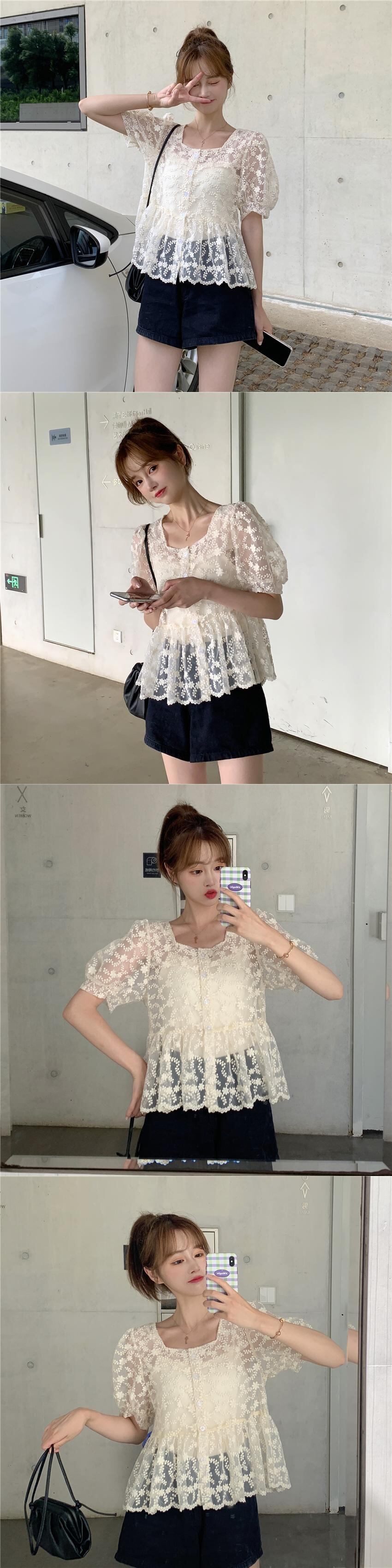 ✞ レースシャツブラウスブレストメッシュスリーブショート 刺繍 大人ガーリー スウィート キュート カジュアル スクウェア ✞ゴスロリ SM ミリ 甘ロリ クラロリ 和ロリ エレガント 黒ロリ 姫ロリ 華ロリ BB-BB5239879