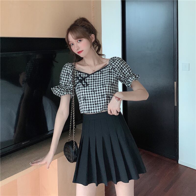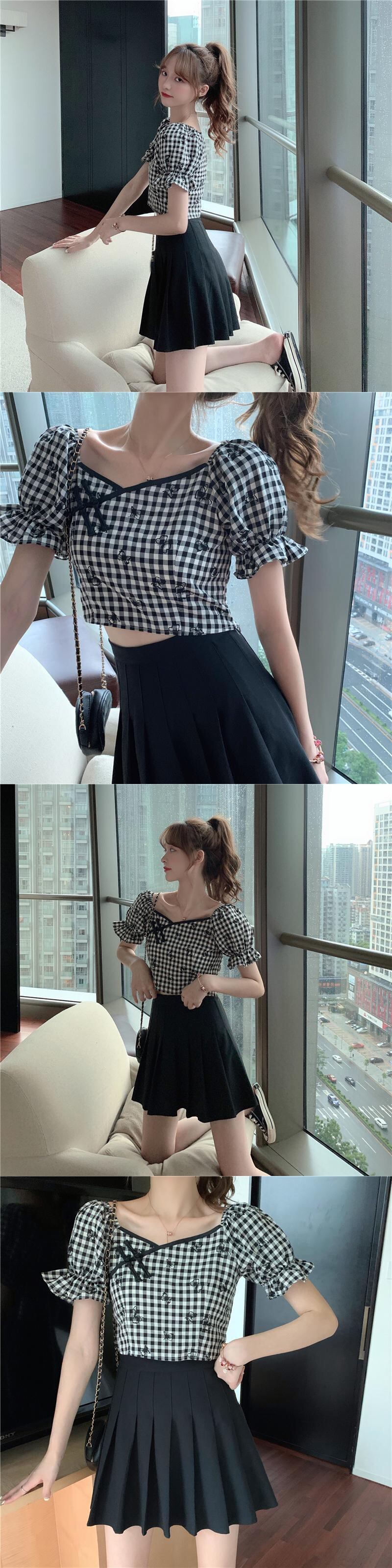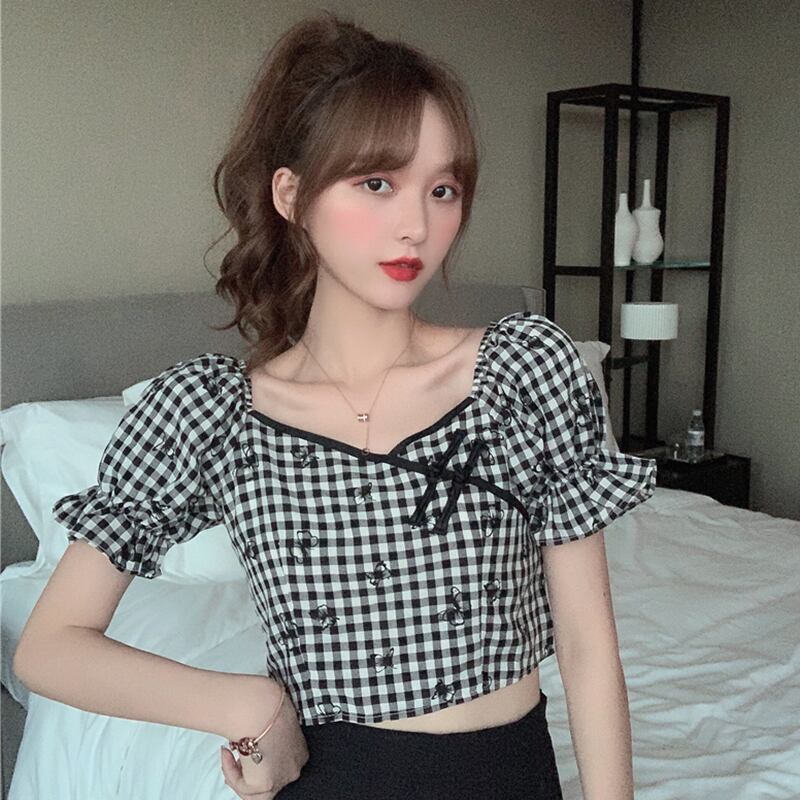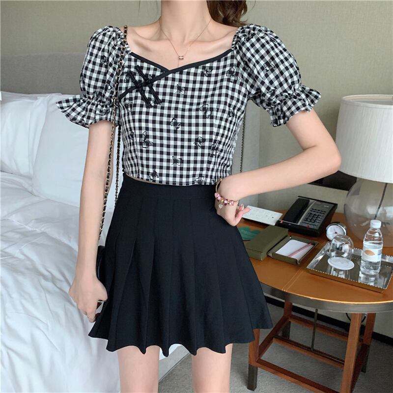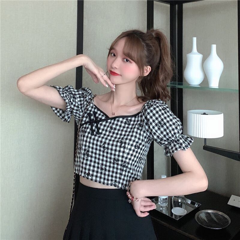 ✞ Butterflyデザイン プリントシャツブラウスバックルチェック柄ショートトップス 大人ガーリー スウィート キュート カジュアル ✞ゴスロリ SM ミリ 甘ロリ クラロリ 和ロリ エレガント 黒ロリ 姫ロリ 華ロリ BB-BB3090250