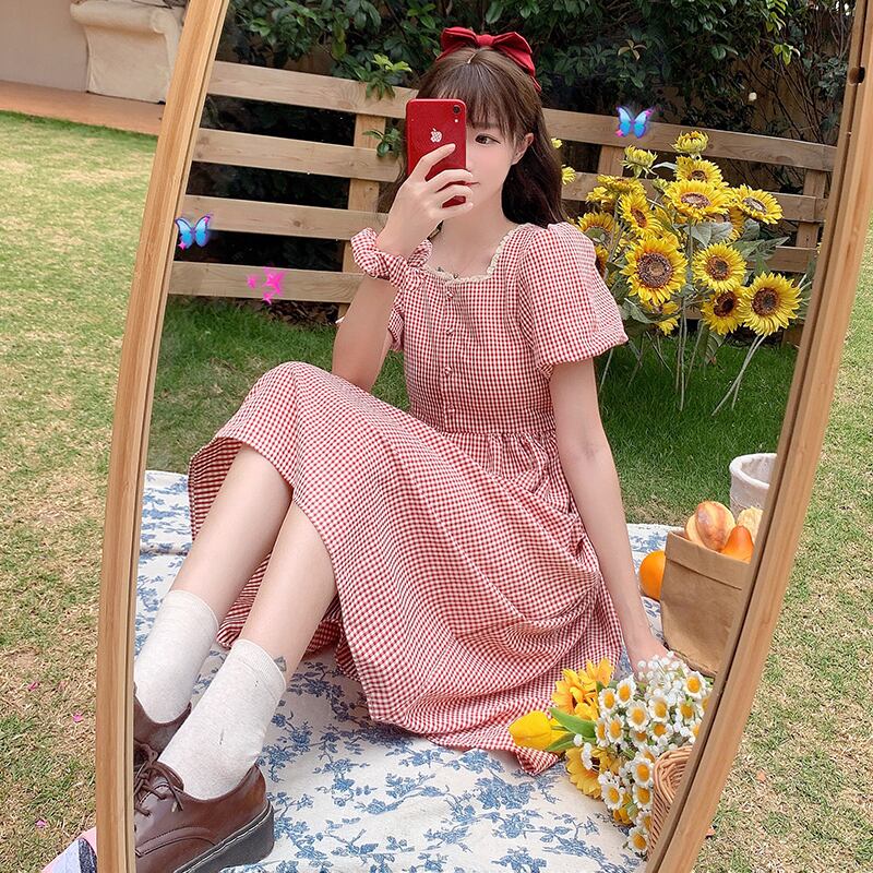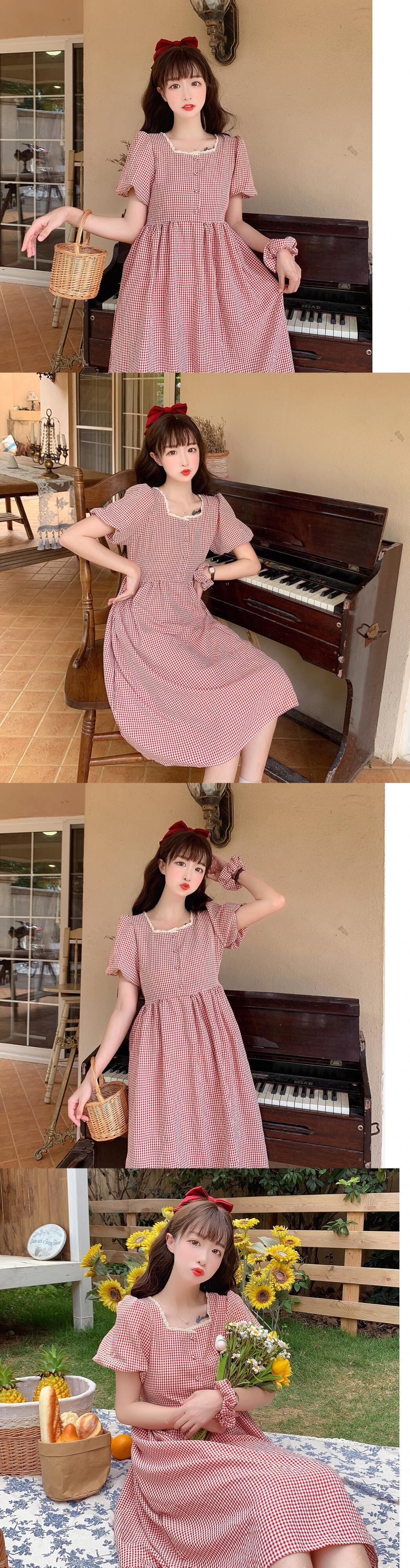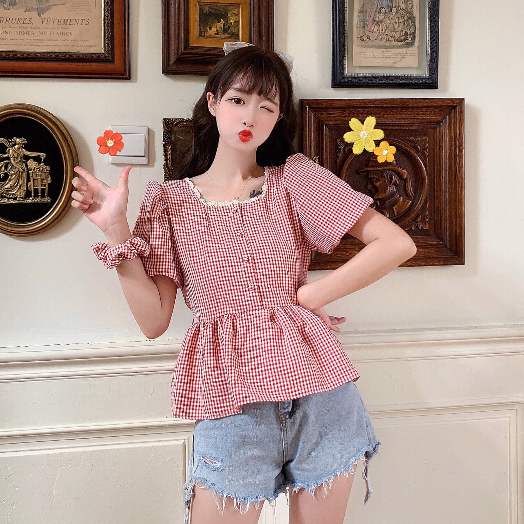 ✞ レーススリーブ半袖スタンダードチェック柄 ショート レトロ ハーフスリーブ 大人ガーリー スウィート キュート カジュアル スクウェア ✞ゴスロリ SM ミリ 甘ロリ クラロリ 和ロリ エレガント 黒ロリ 姫ロリ 華ロリ BB-BB3229617