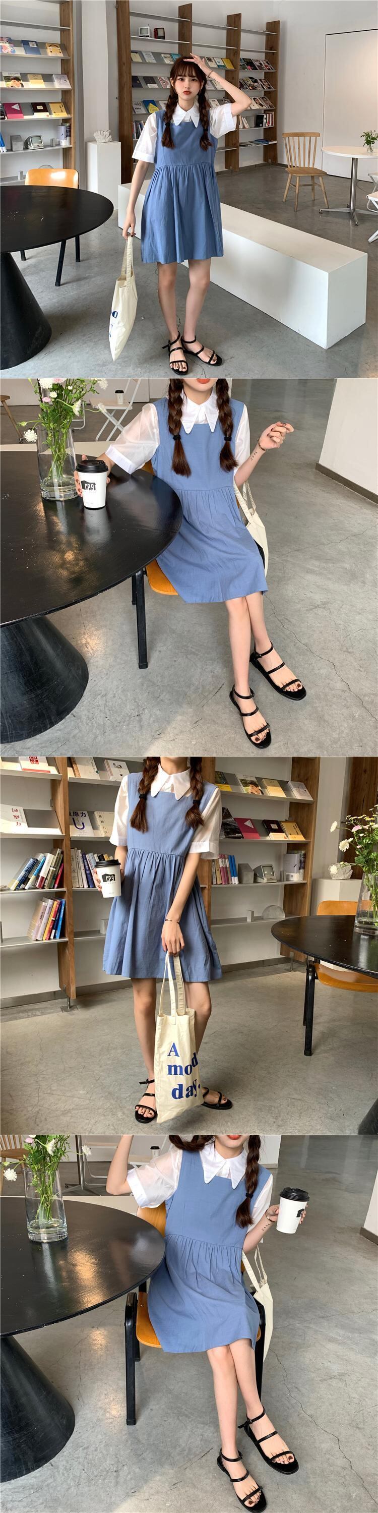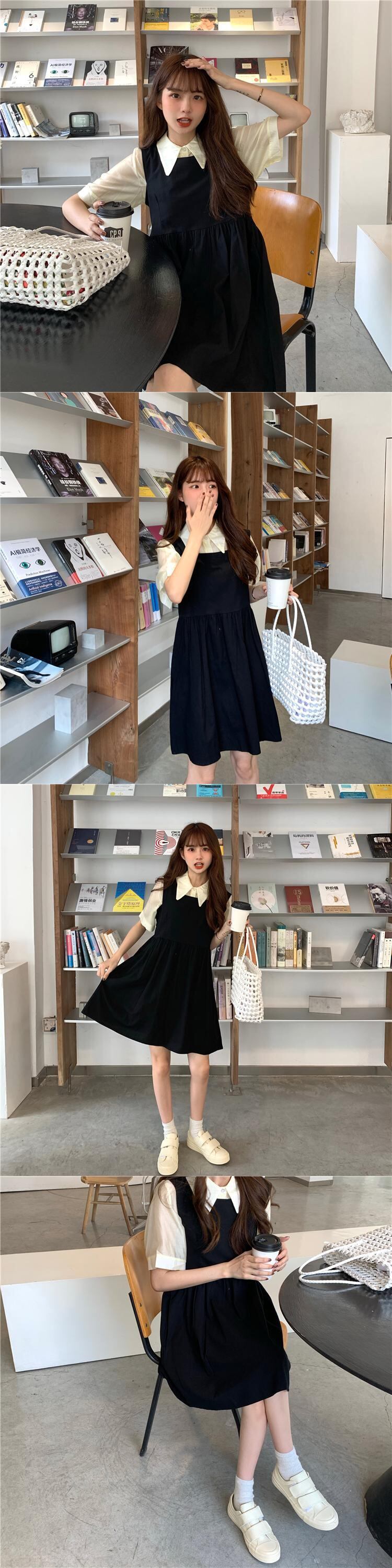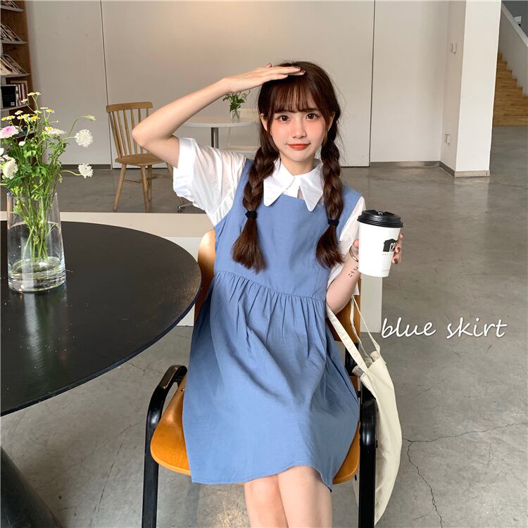 色:白いシャツワンピース,アプリコットシャツワンピース,ブルースカートワンピース,ブラックスカートワンピース