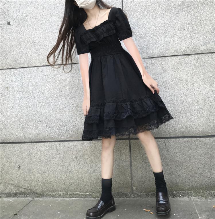 ✞ ブラックスカート レーススリーブきれいめ☆ ✞ゴスロリ SM ミリ 甘ロリ クラロリ 和ロリ エレガント 黒ロリ 姫ロリ 華ロリ BB-BB8075638