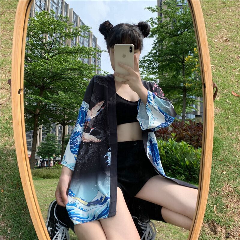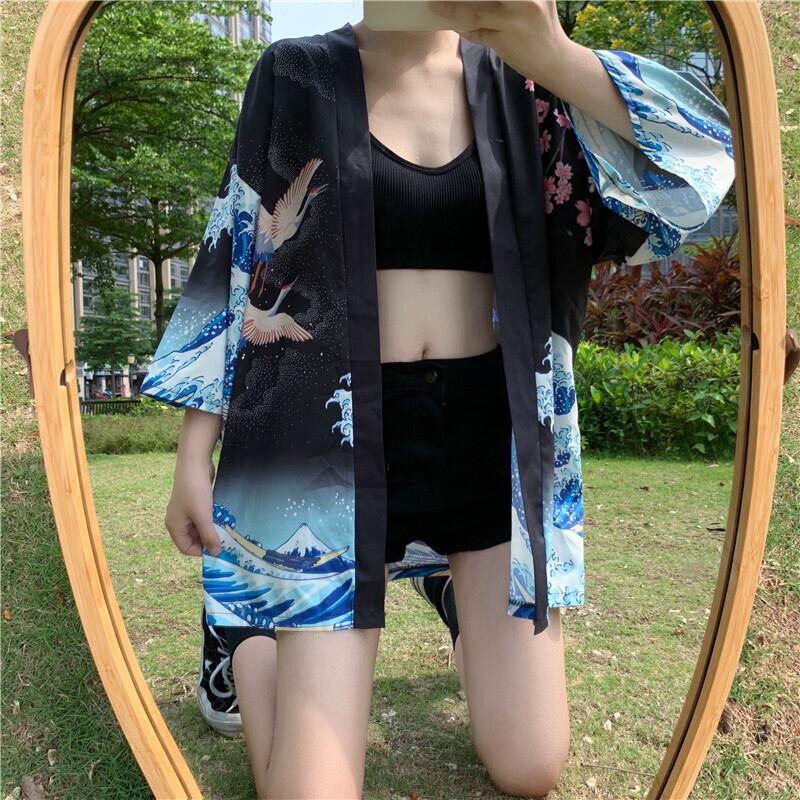 ✞ 自然派きれいめ☆プリントシャツブラウス着物風カーディガンジャケット ロング ✞ゴスロリ SM ミリ 甘ロリ クラロリ 和ロリ エレガント 黒ロリ 姫ロリ 華ロリ BB-BB6587837