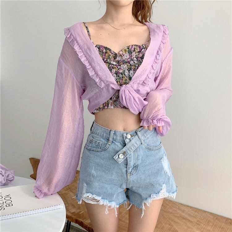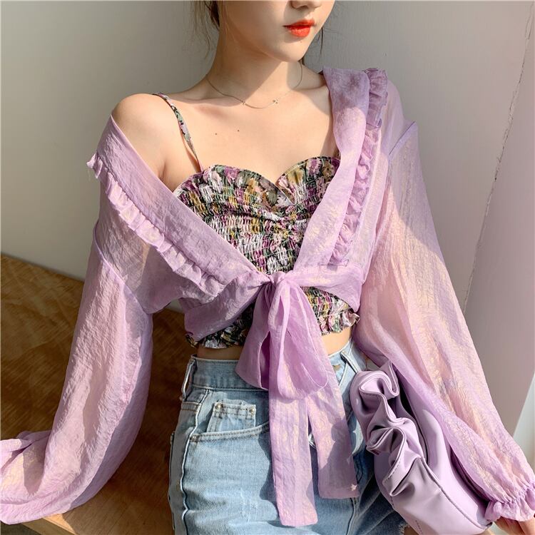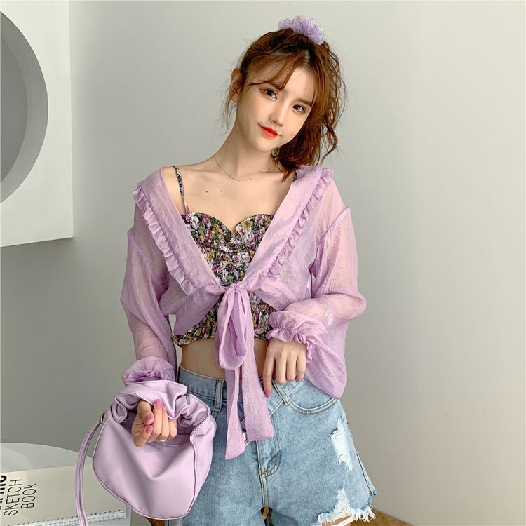 ✞ シャツブラウスレース♬カワイイ♥シフォンジャケット ロング パープル ✞ゴスロリ SM ミリ 甘ロリ クラロリ 和ロリ エレガント 黒ロリ 姫ロリ 華ロリ BB-BB2318632