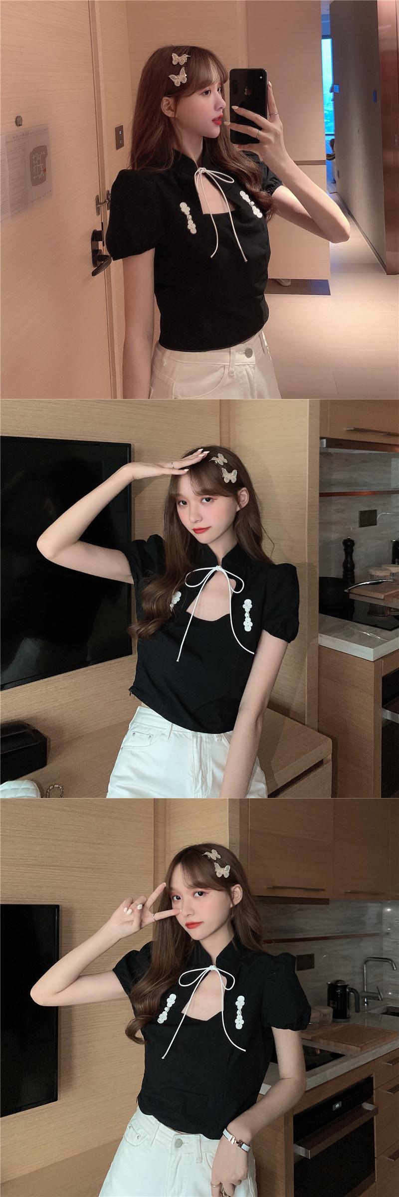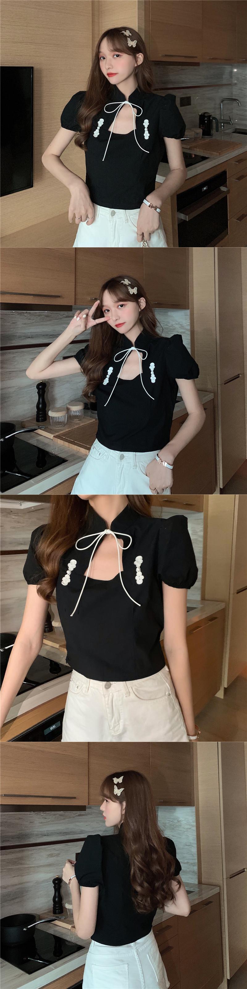 ✞ スタンダードバックルショートシャツブラウスレーススリーブトップス レトロ 大人ガーリー スウィート キュート カジュアル ✞ゴスロリ SM ミリ 甘ロリ クラロリ 和ロリ エレガント 黒ロリ 姫ロリ 華ロリ BB-BB4737888