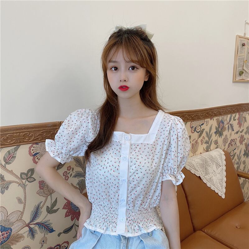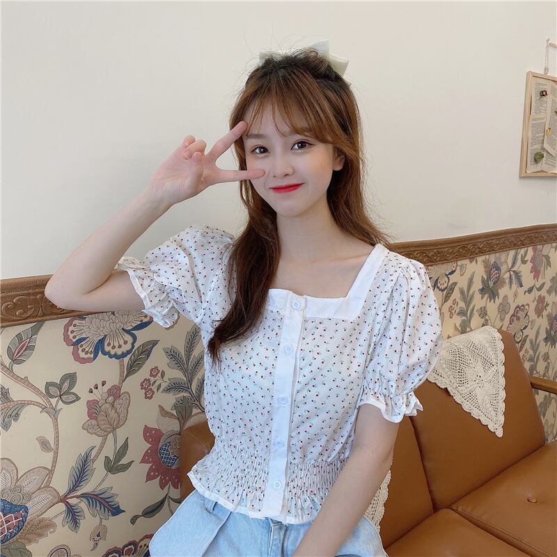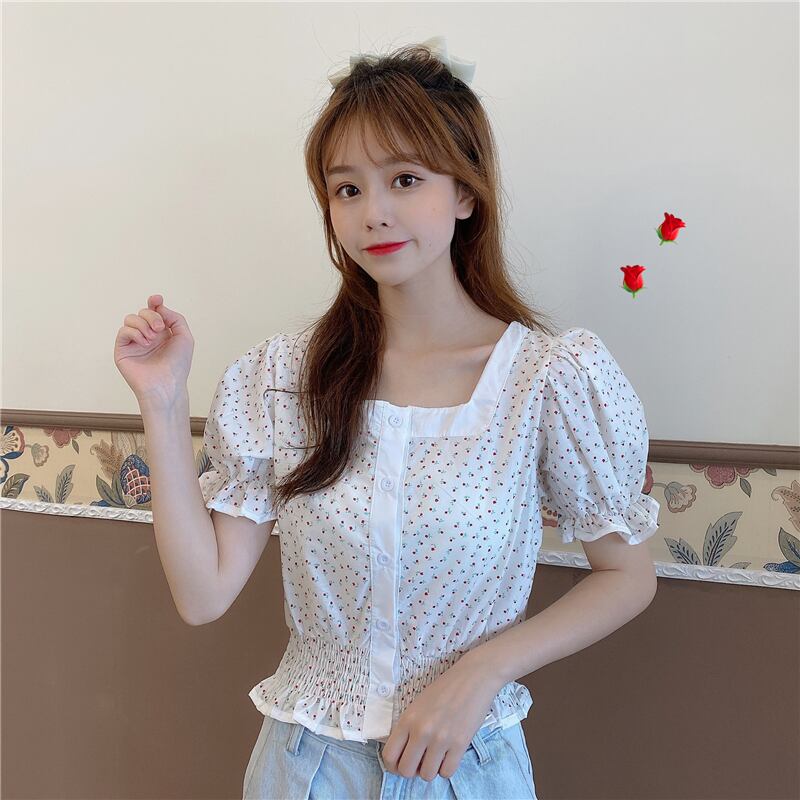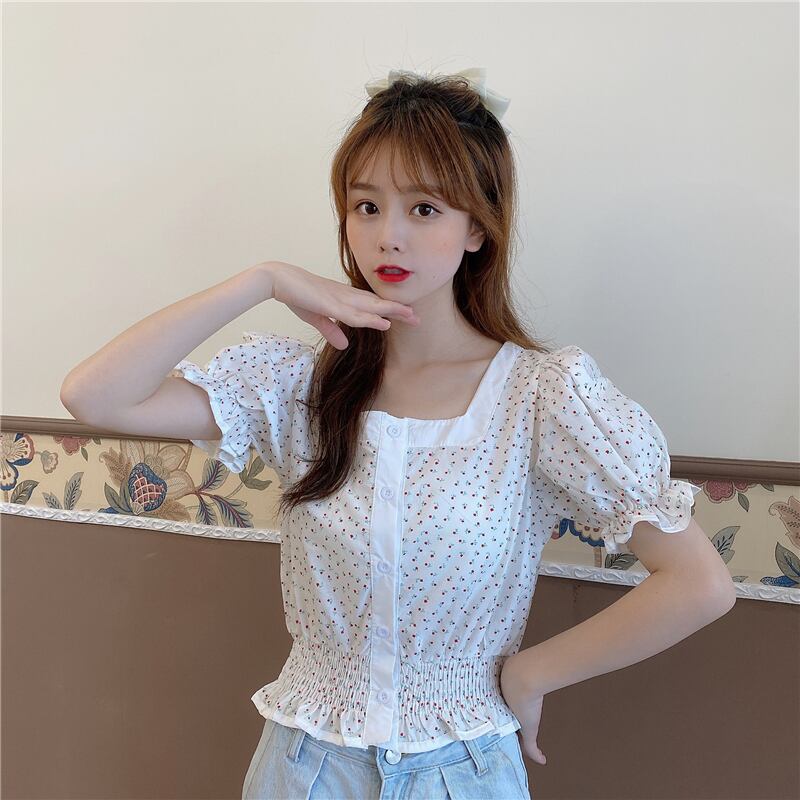 ✞ 花柄プリーツウエストすっきり☆着痩せスリーブショートブレストシャツブラウス 大人ガーリー スウィート キュート カジュアル ✞ゴスロリ SM ミリ 甘ロリ クラロリ 和ロリ エレガント 黒ロリ 姫ロリ 華ロリ BB-BB2437174