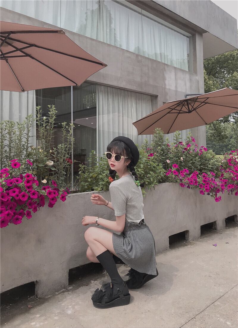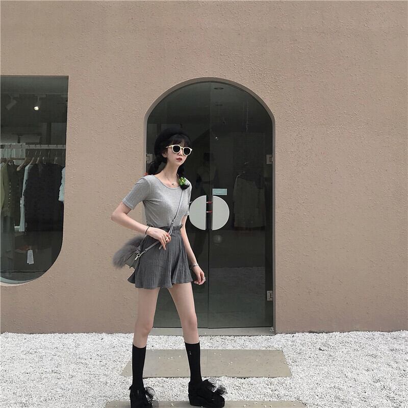 ✞ きれいめ☆グレーショートTシャツ ♬カワイイ♥ショートパンツストライプニットスカート パンツ ショーツ ブルマー ✞ゴスロリ SM ミリ 甘ロリ クラロリ 和ロリ エレガント 黒ロリ 姫ロリ 華ロリ BB-BB6151053