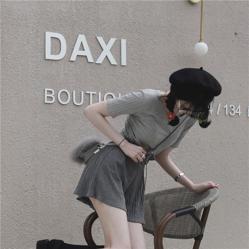 色:グレートップワンピース,ダークグレーのショートパンツワンピース