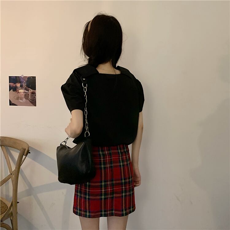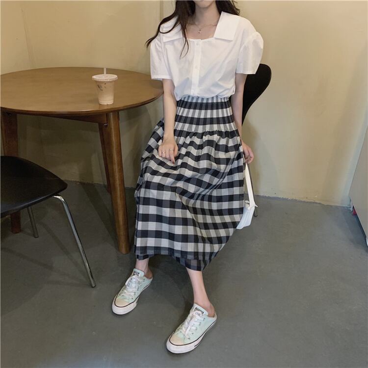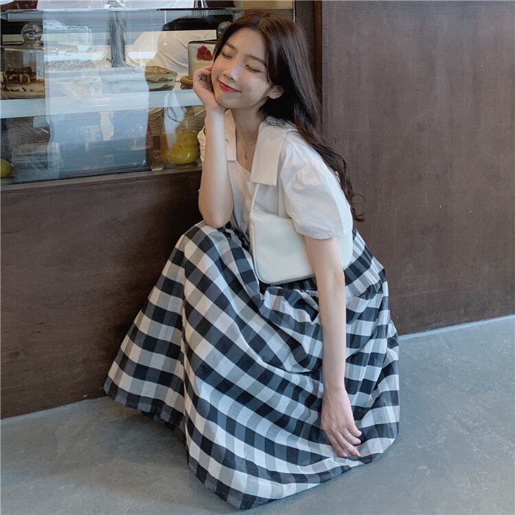 色:白いシャツワンピース,黒シャツワンピース,チェック柄スカートワンピース