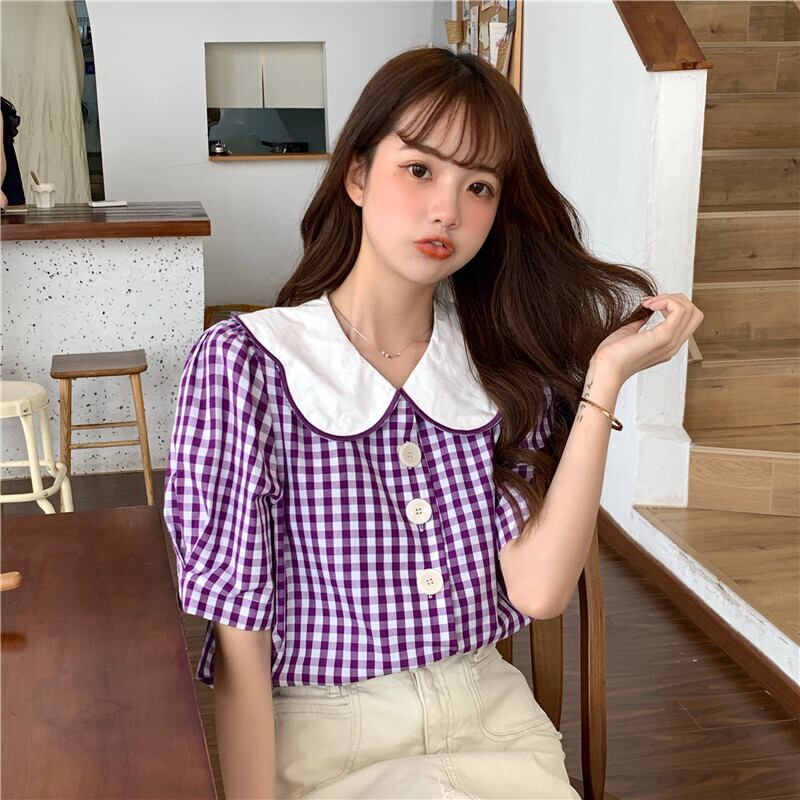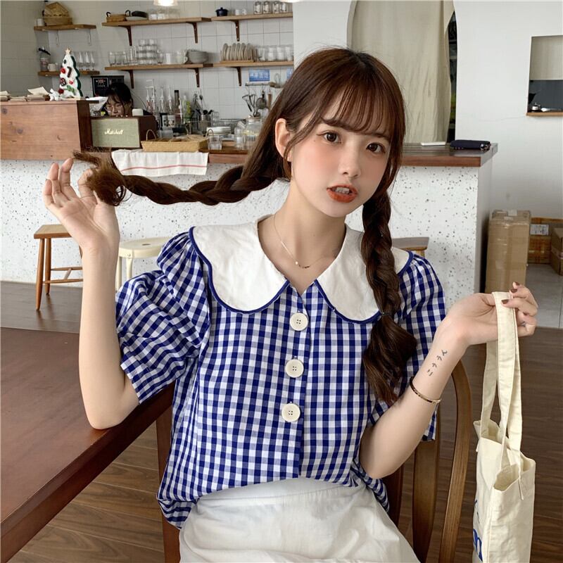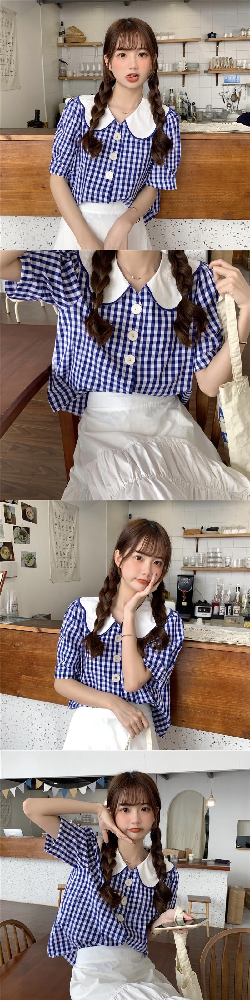 ✞ トップス ショートスリーブチェック柄シャツブラウス 大人ガーリー スウィート キュート カジュアル ✞ゴスロリ SM ミリ 甘ロリ クラロリ 和ロリ エレガント 黒ロリ 姫ロリ 華ロリ BB-BB8121058